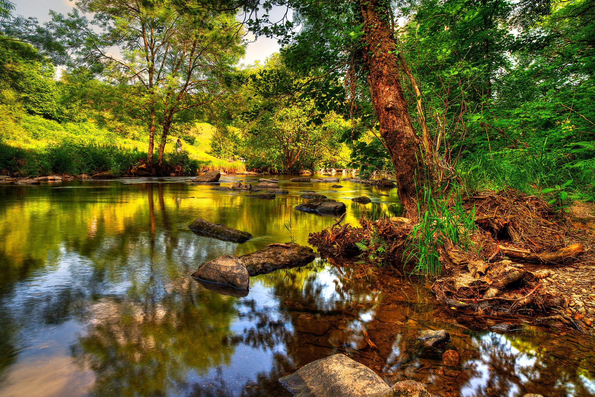Paesaggio del lago vicino alla riva rocciosa