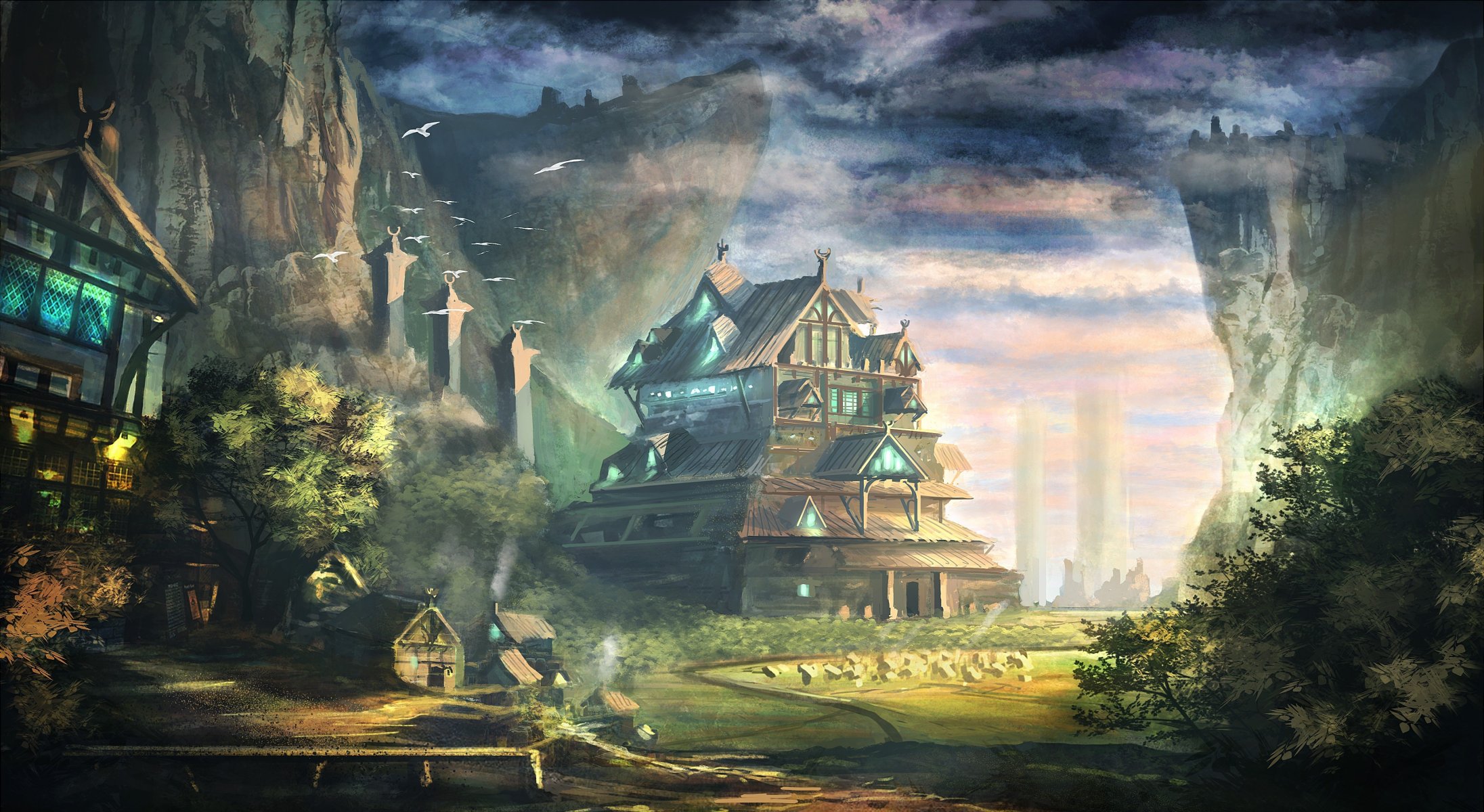 Vista della città di notte dall'alto alla luce di temporali e rare finestre luminose