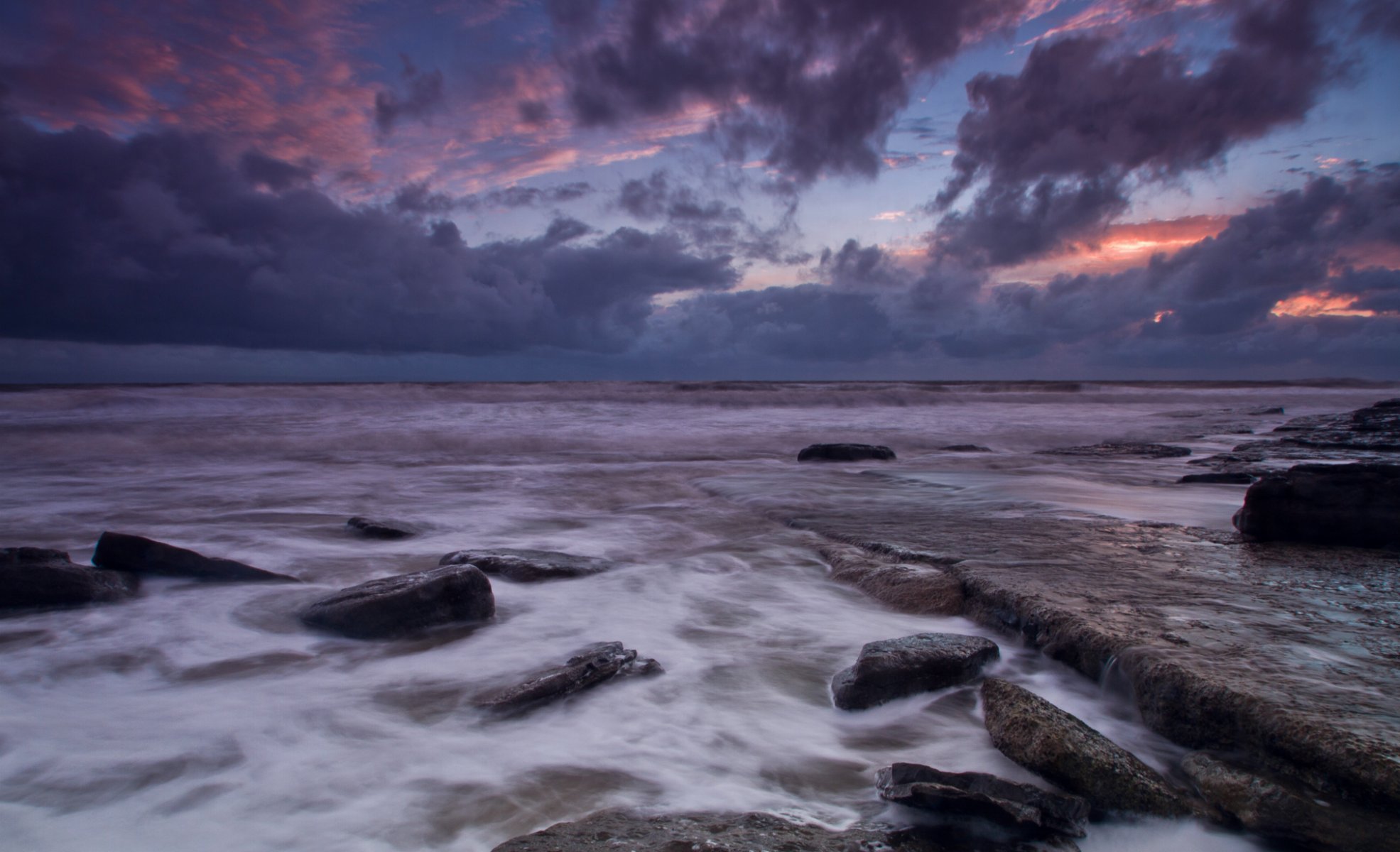 Spiaggia rocciosa di sera