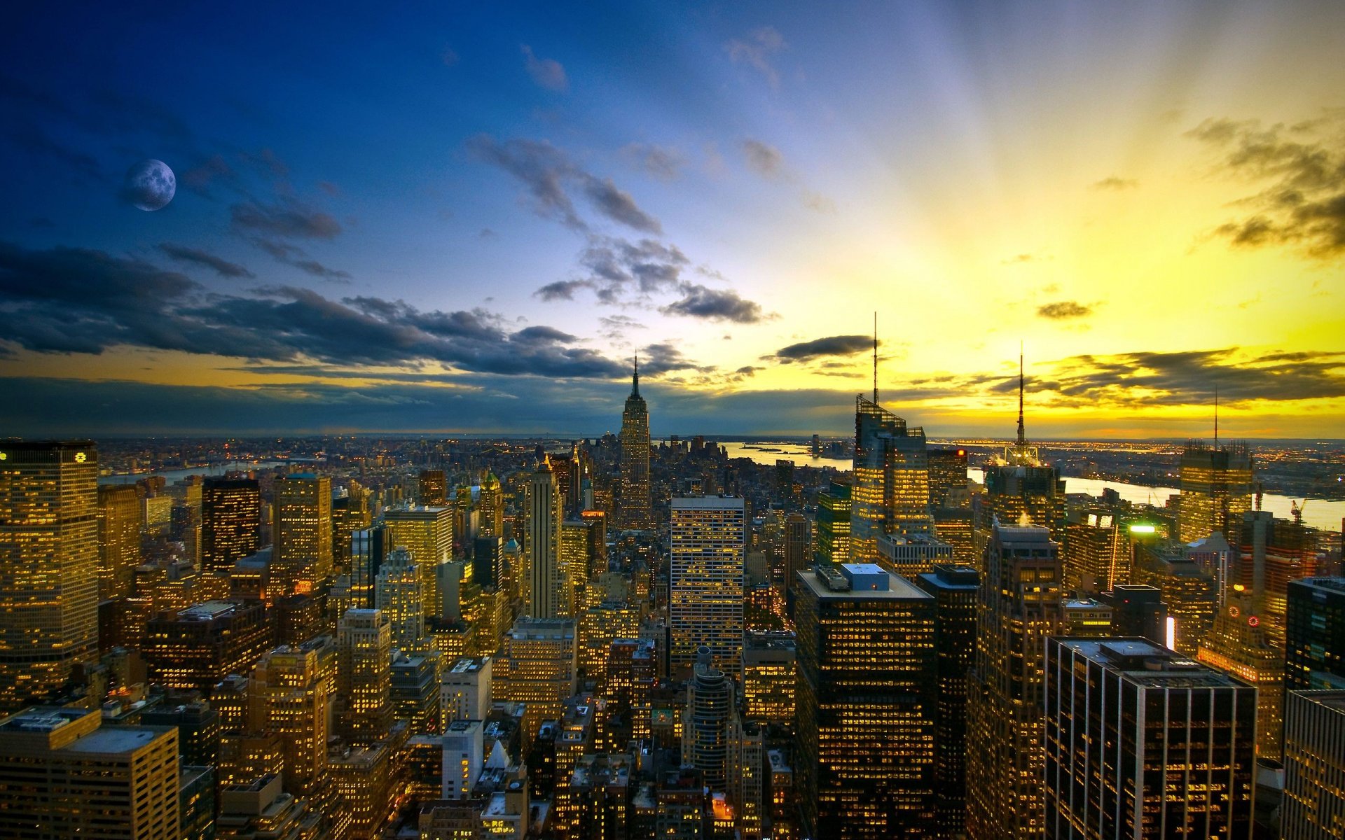 Tramonto nel cielo serale sopra la città