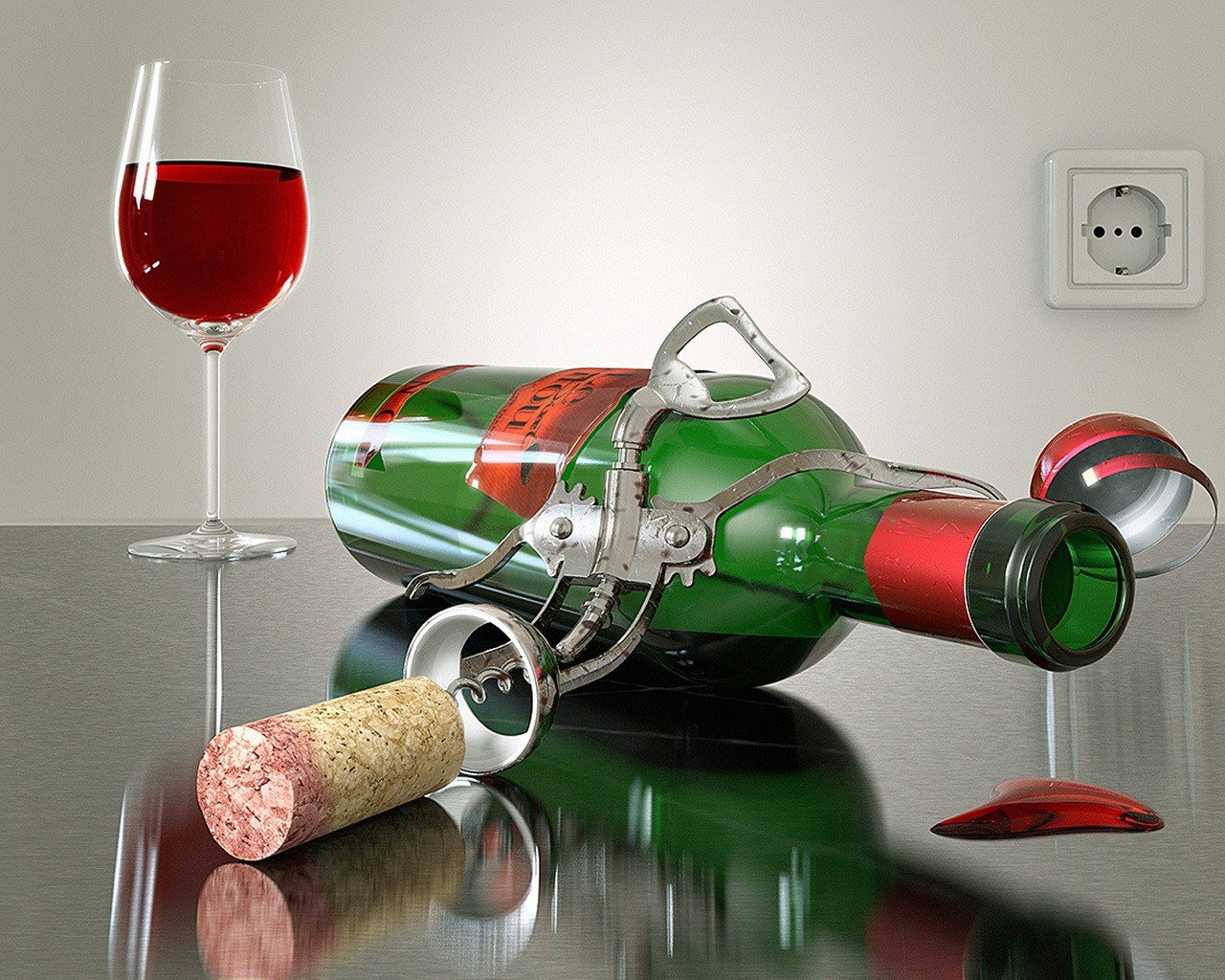 Bottiglia aperta di vino rosso e bicchiere di vino