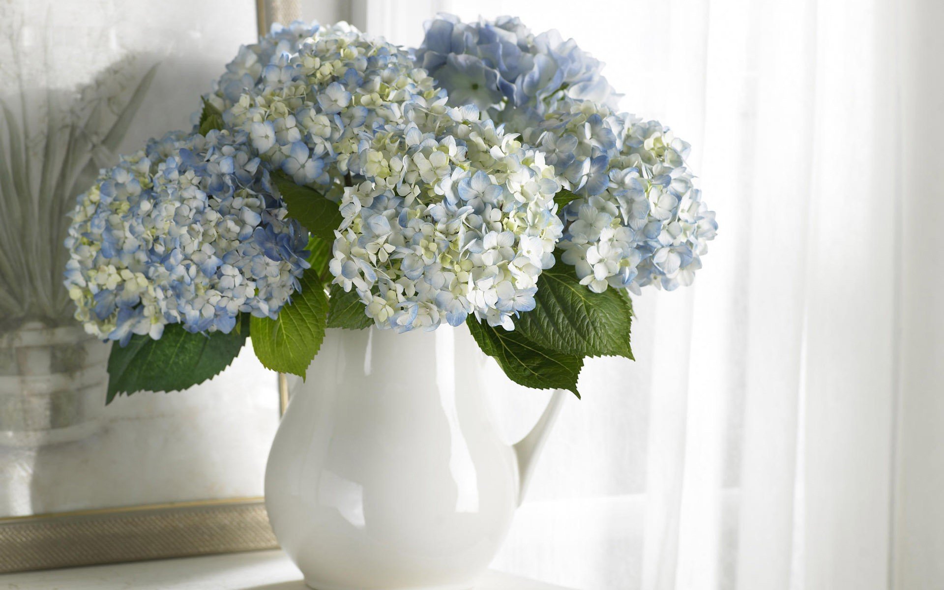 Vaso bianco con bouquet di ortensie