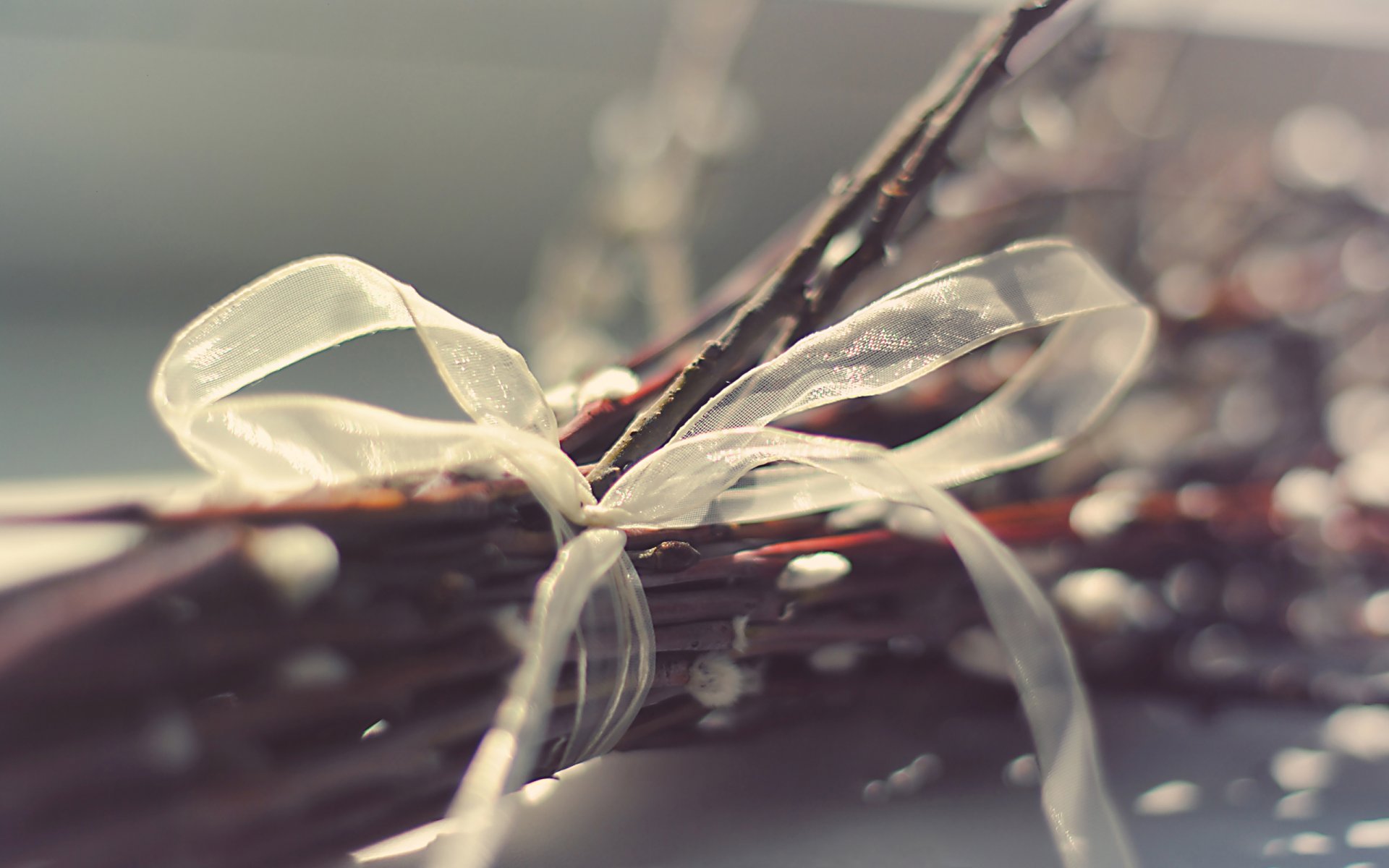Foto di un bouquet di salice con un nastro