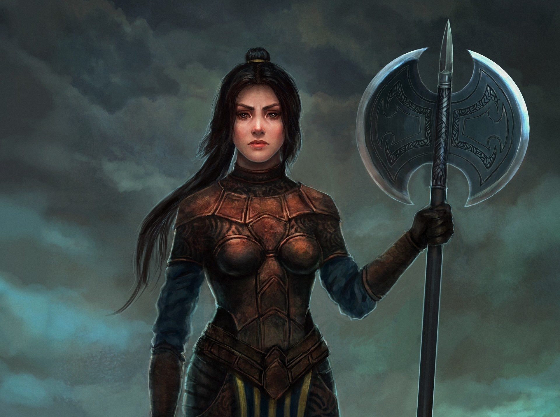 Arte spaziale. Una donna con un'arma laser gioca a carte e chip con un robot e con mostri in tute spaziali
