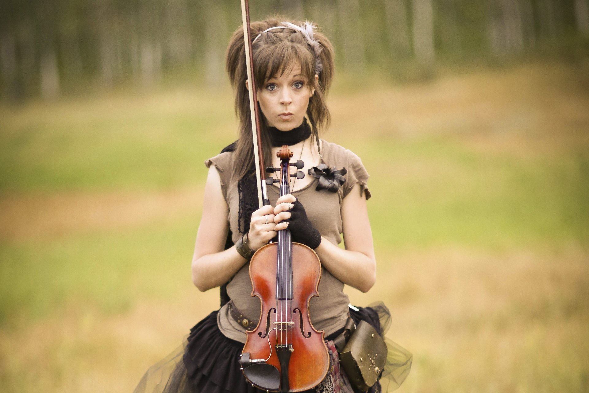 Ragazza in un campo con un violino
