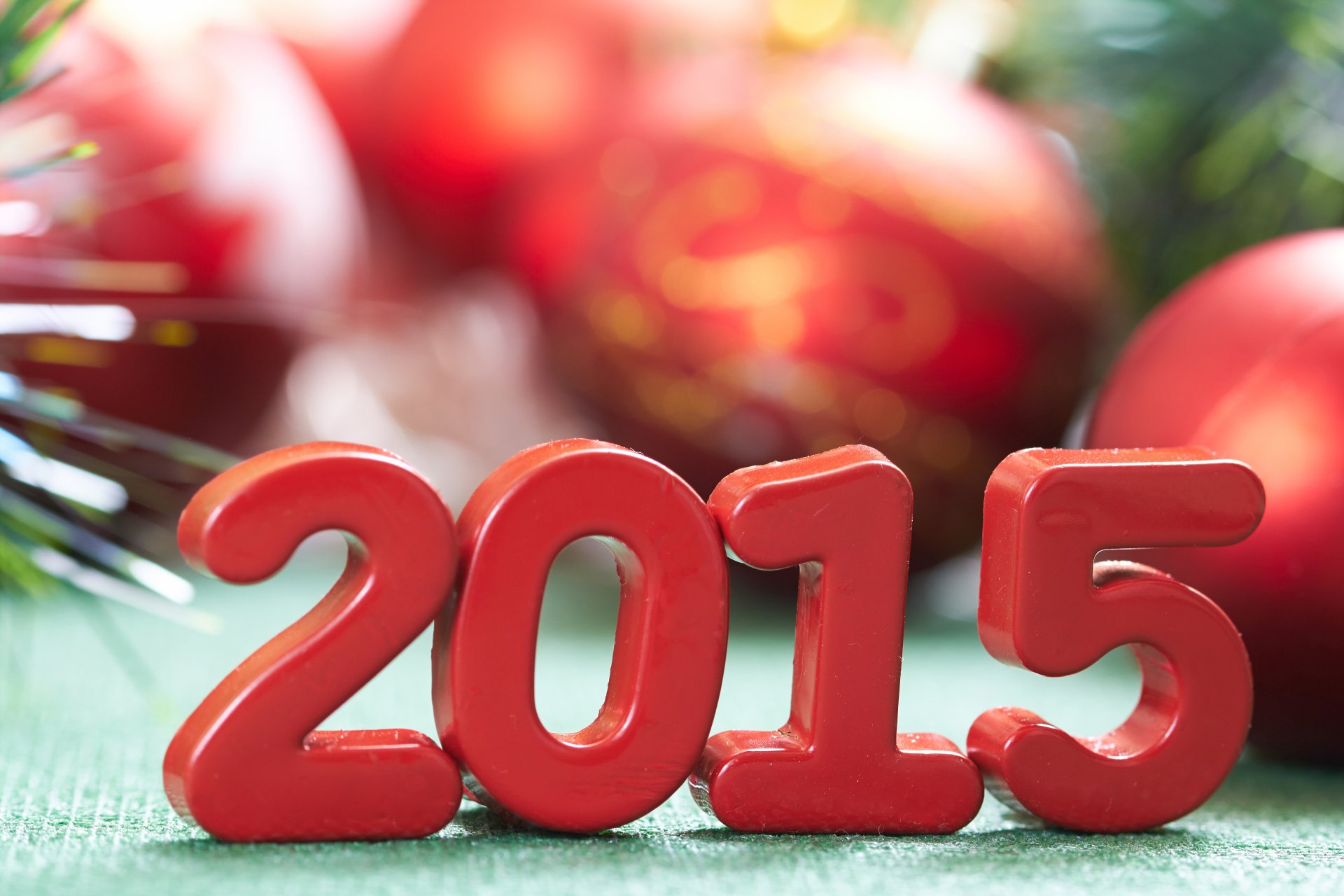 2015 anno numeri sullo sfondo di alberi di Natale e palle