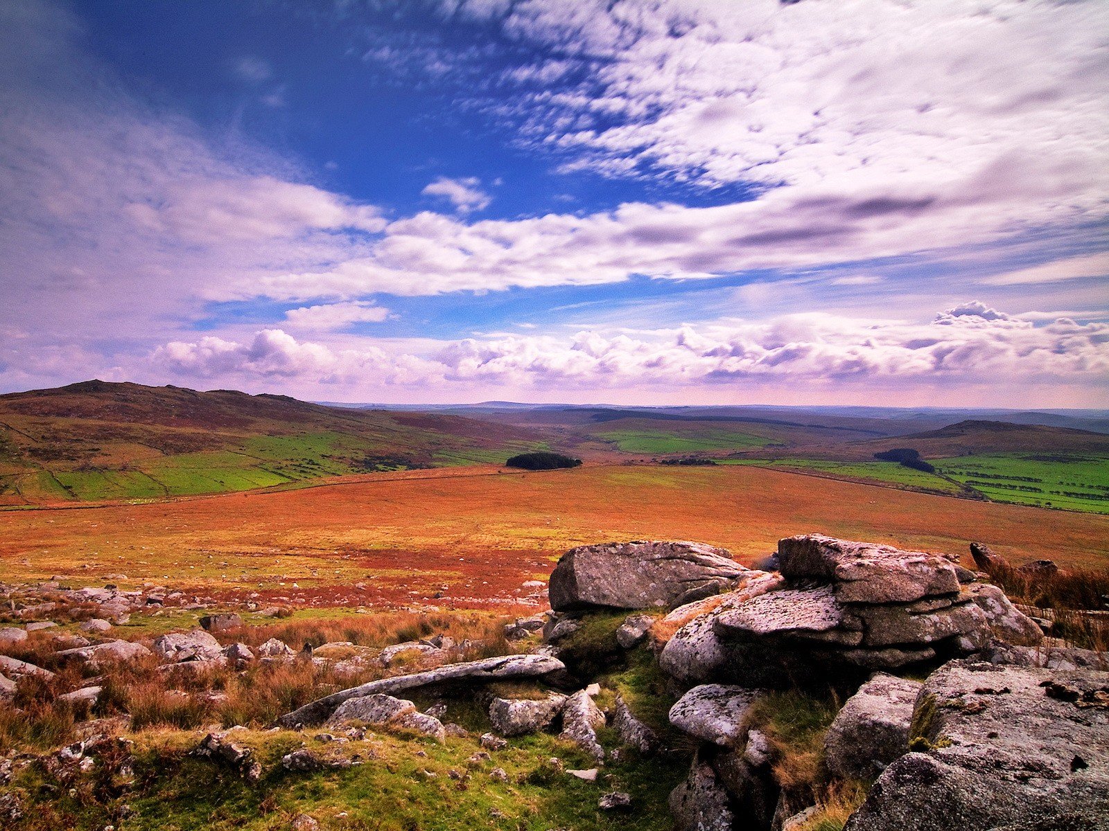 Paesaggio verde tour sullo sfondo di colline e cielo