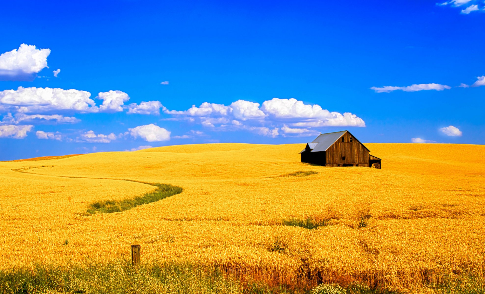 Giorno su un campo di lavanda sotto un cielo blu con nuvole bianche