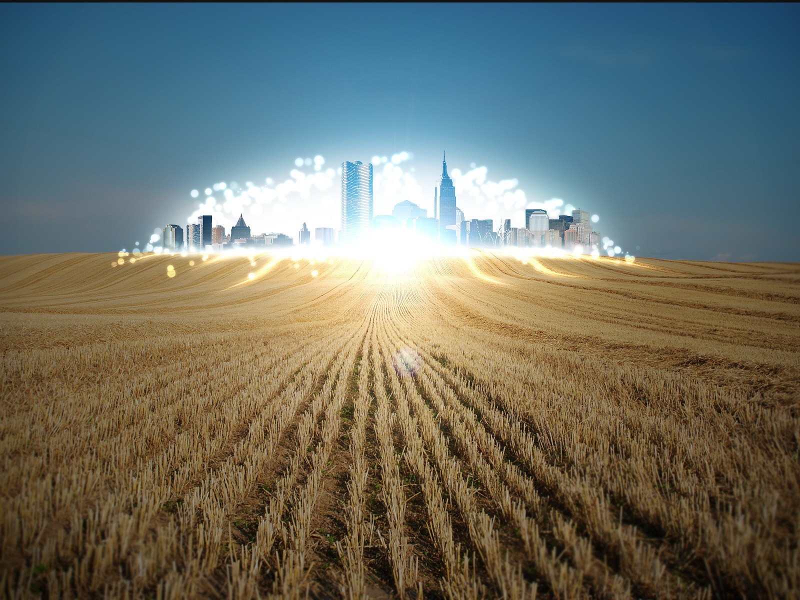 Bagliore sul campo come una città
