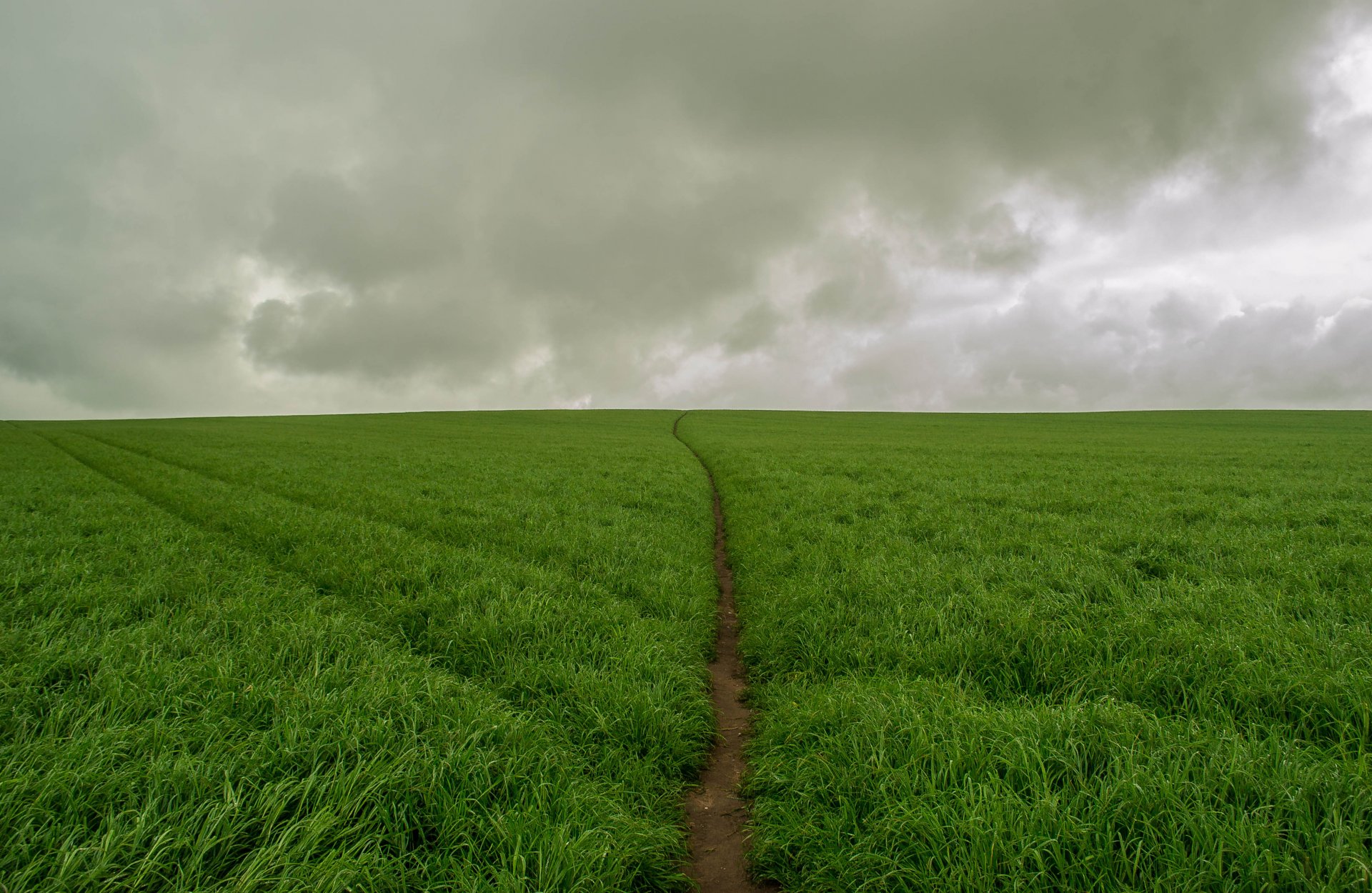 Elaborazione fotografica del campo autunnale, nuvole arcobaleno