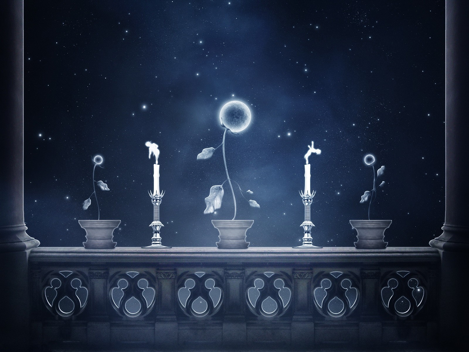 Fiore e candele nel bagliore blu