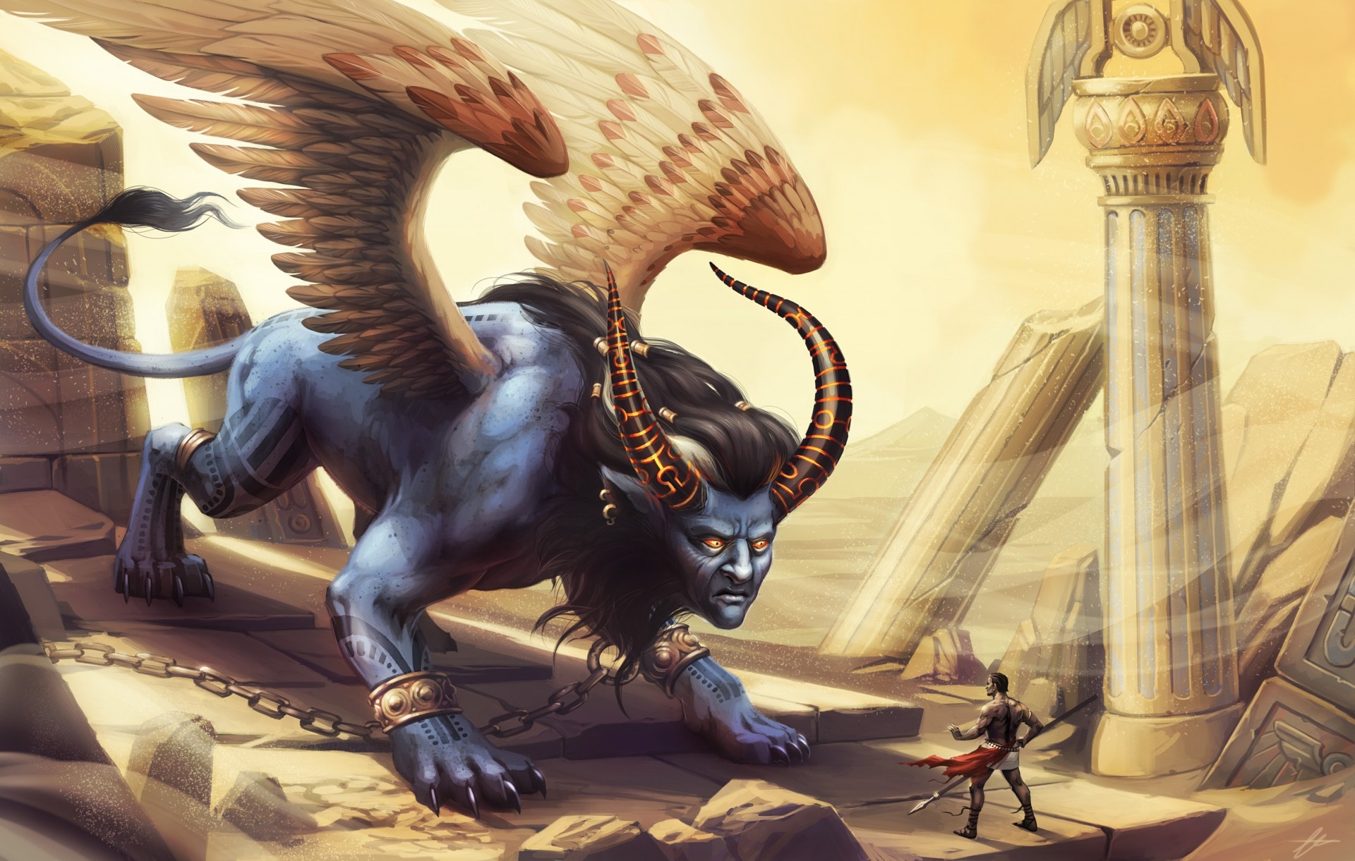 Battaglia di un guerriero e una creatura mistica