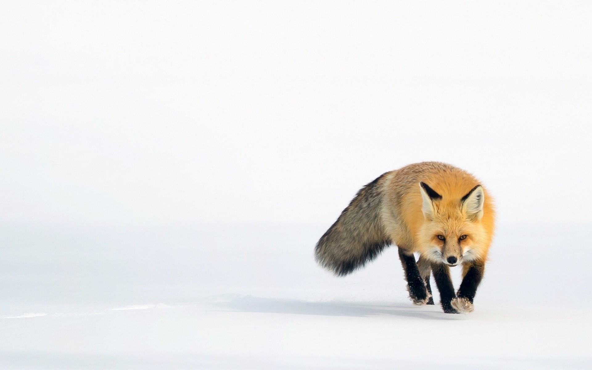 Il cervo è venuto a banchettare con le mele del rubinetto sulla neve