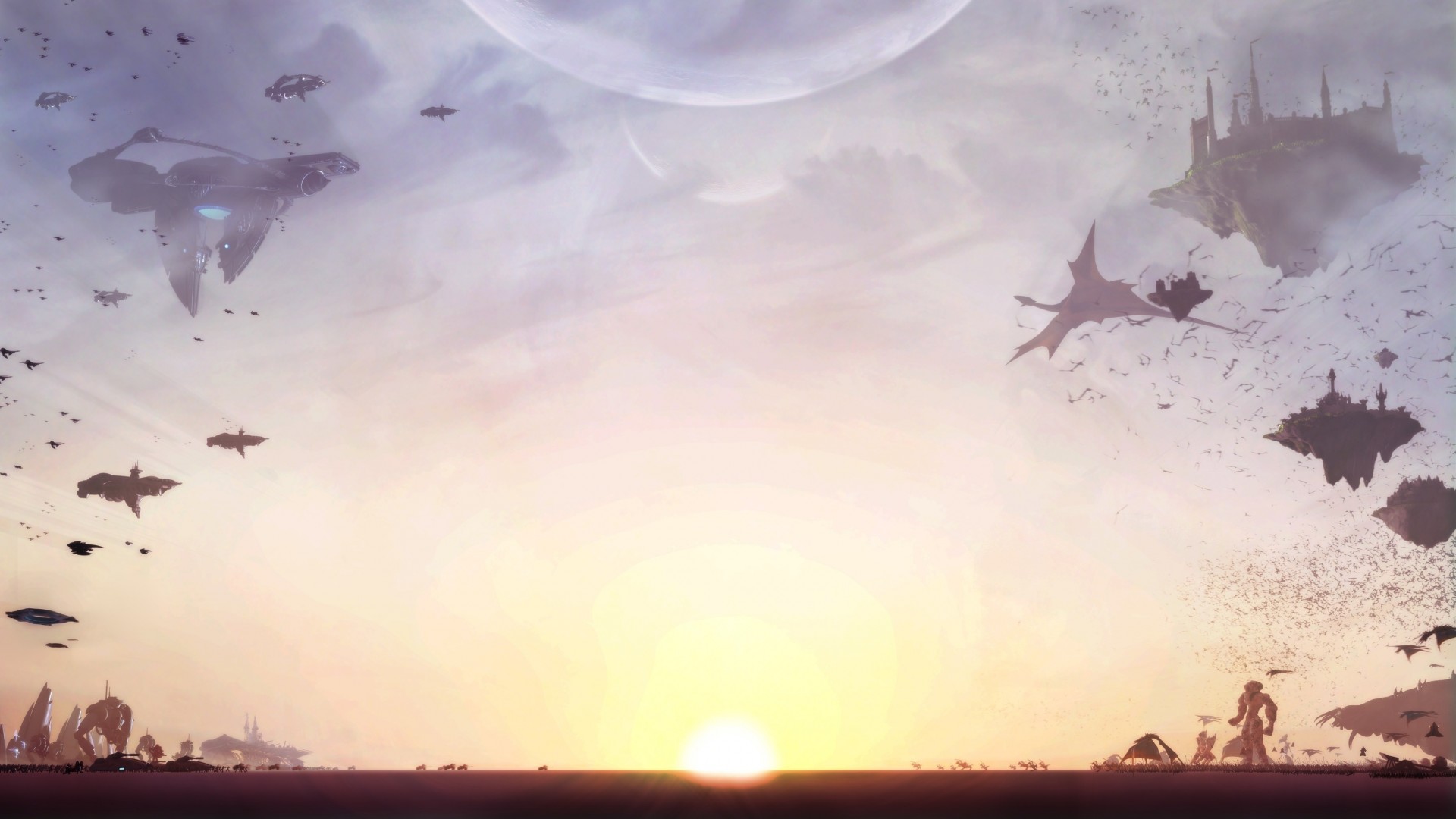 Desktop con gadget e monitor con immagine di paesaggio