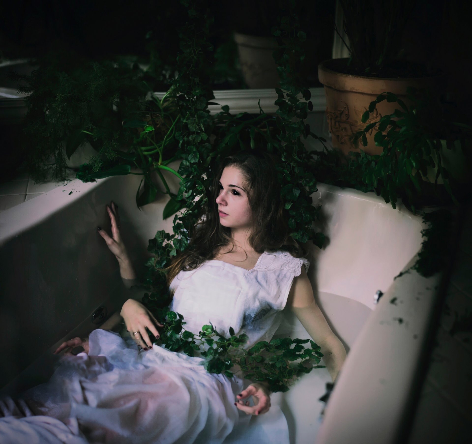 Ragazza mitica in bagno con acqua