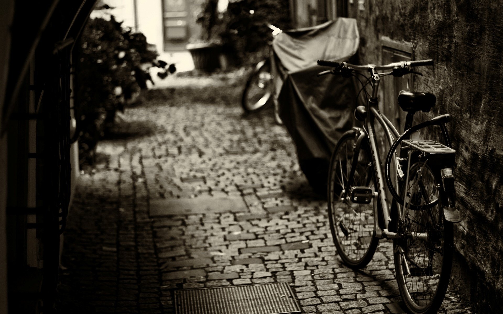 Immagine bianca nera della strada con le biciclette