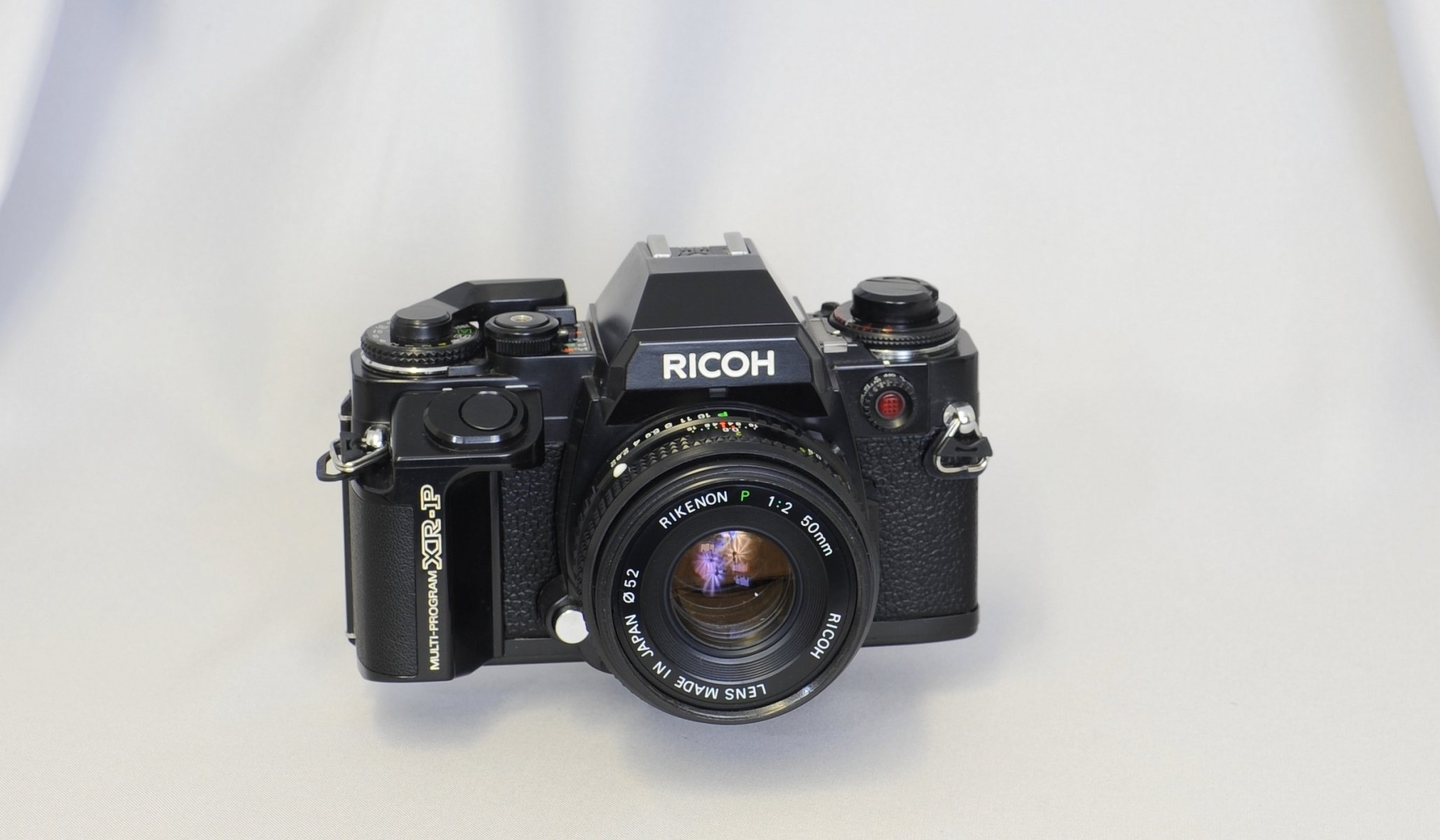 Su uno sfondo bianco c'è una fotocamera in modalità di lavoro