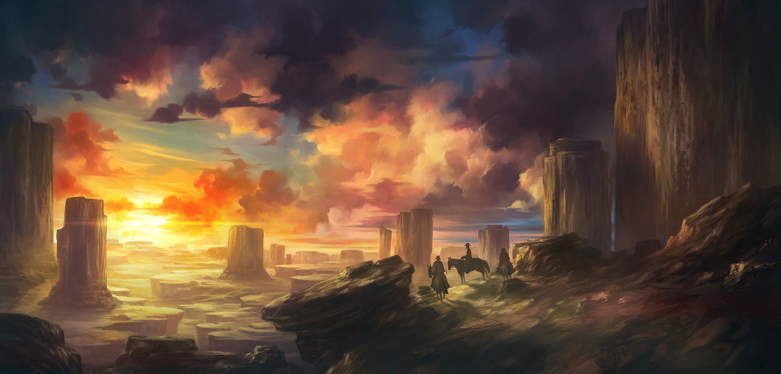 Paesaggio pittoresco con cowboy e nuvole