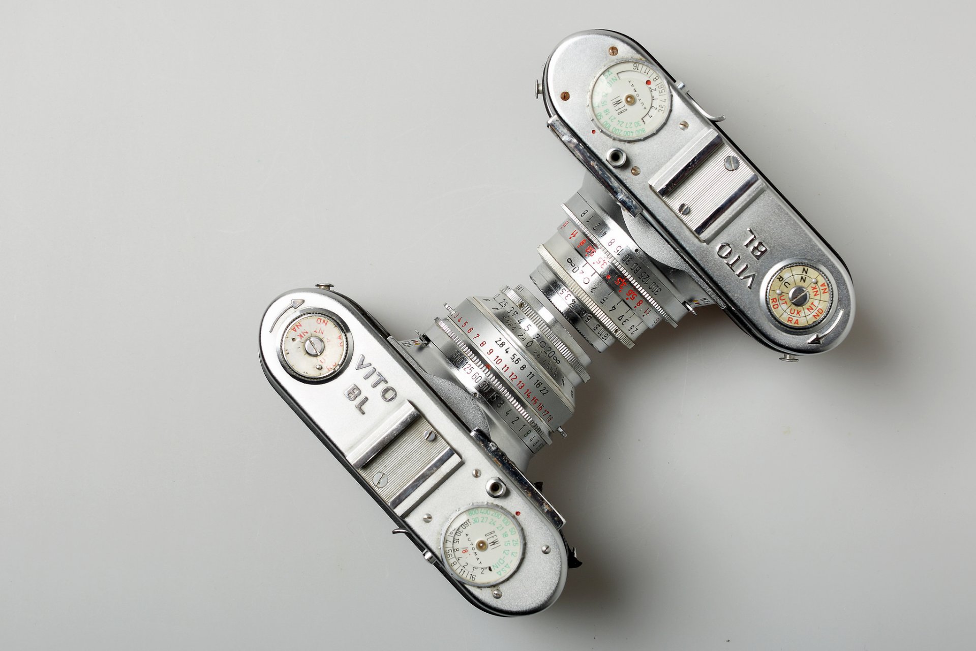 Fotocamera Macro. Uno in posizione sdraiata, l'altro in posizione eretta