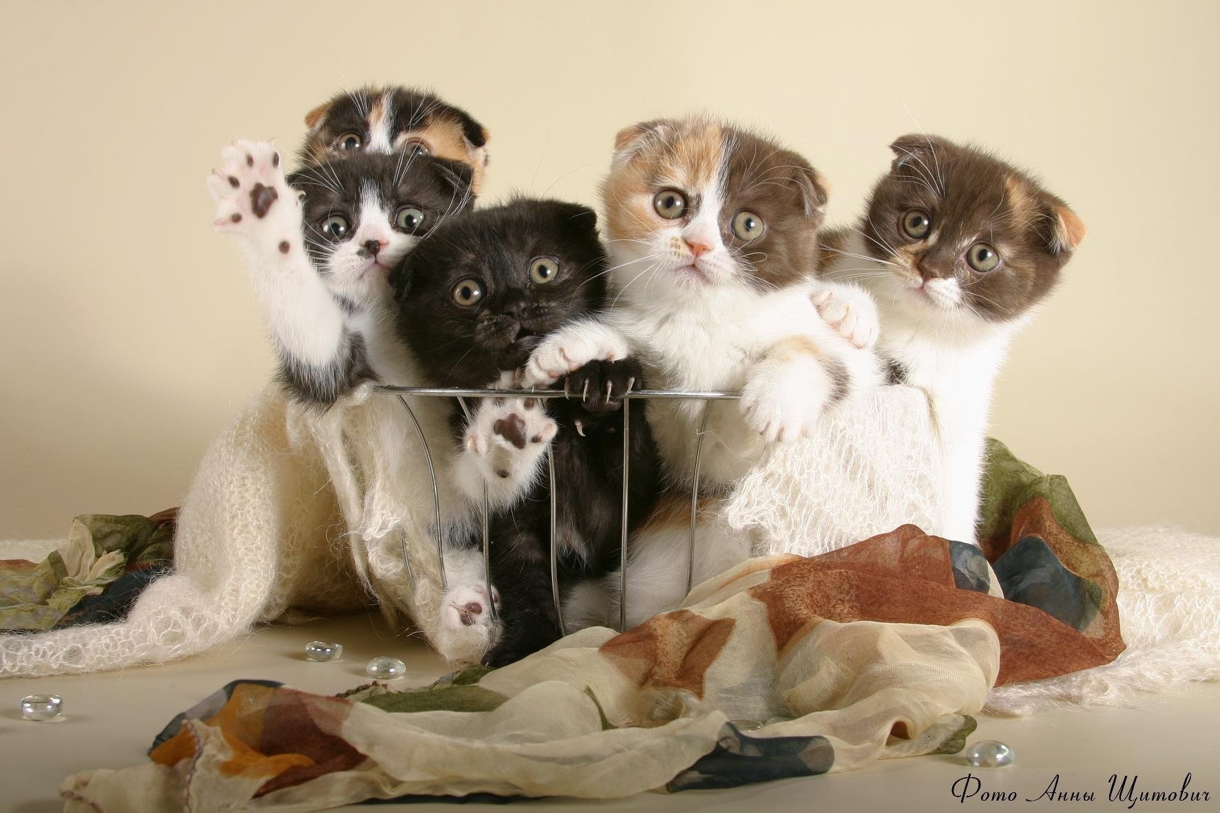 Gattini carini in un cestino. Gattino bianco e nero