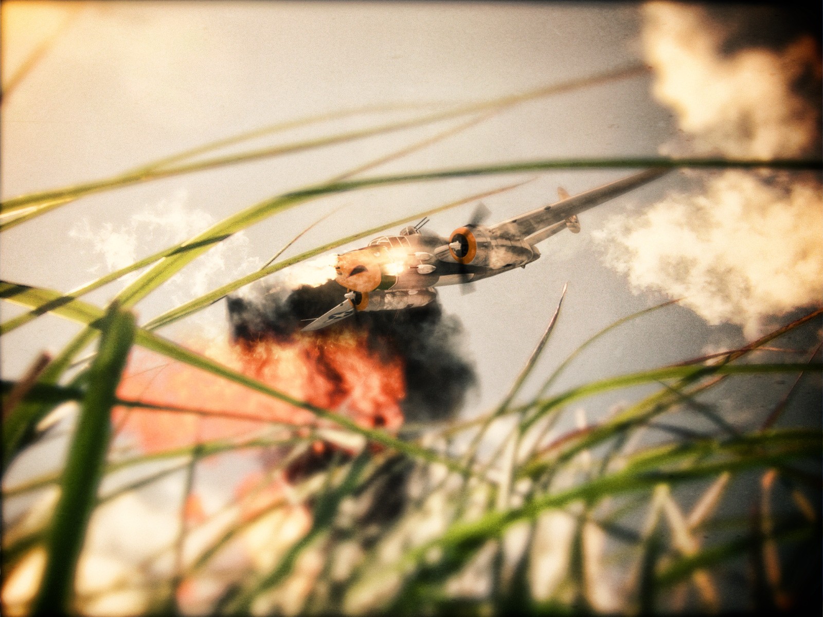 Attacco da un aereo d25 nel cielo sullo sfondo del campo