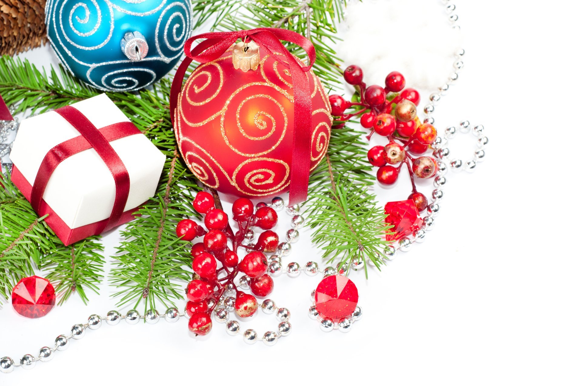 Decorazioni natalizie e Pigna su un ramo di abete