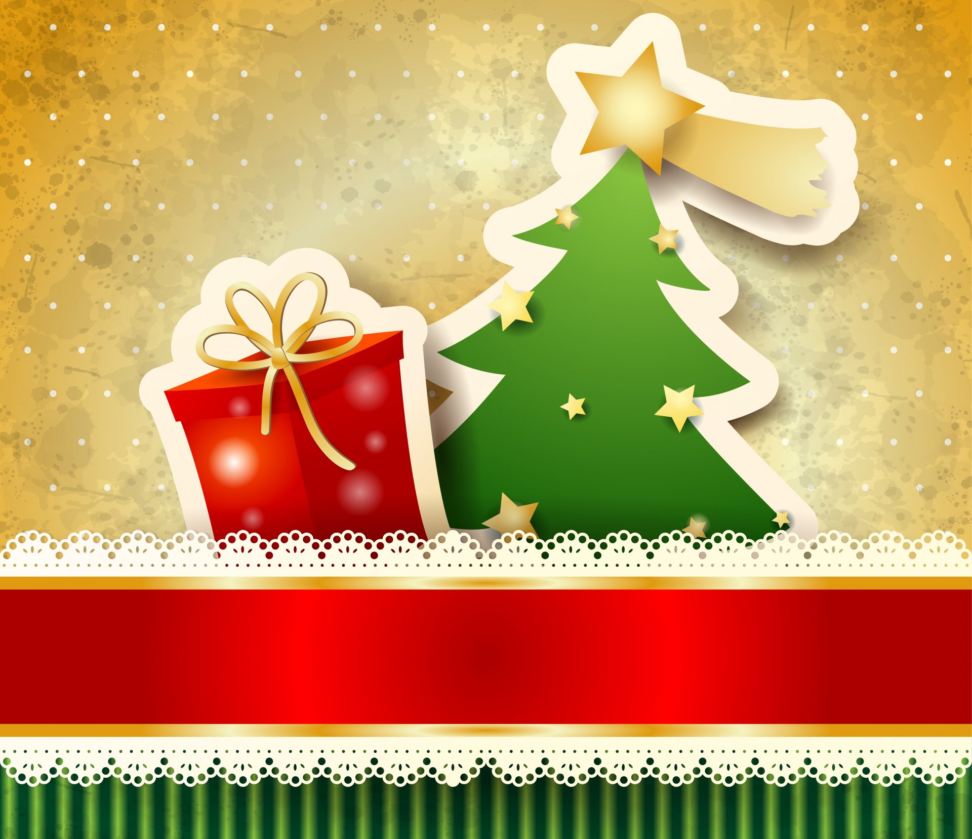 Umore di Capodanno con un regalo sotto l'albero di Natale