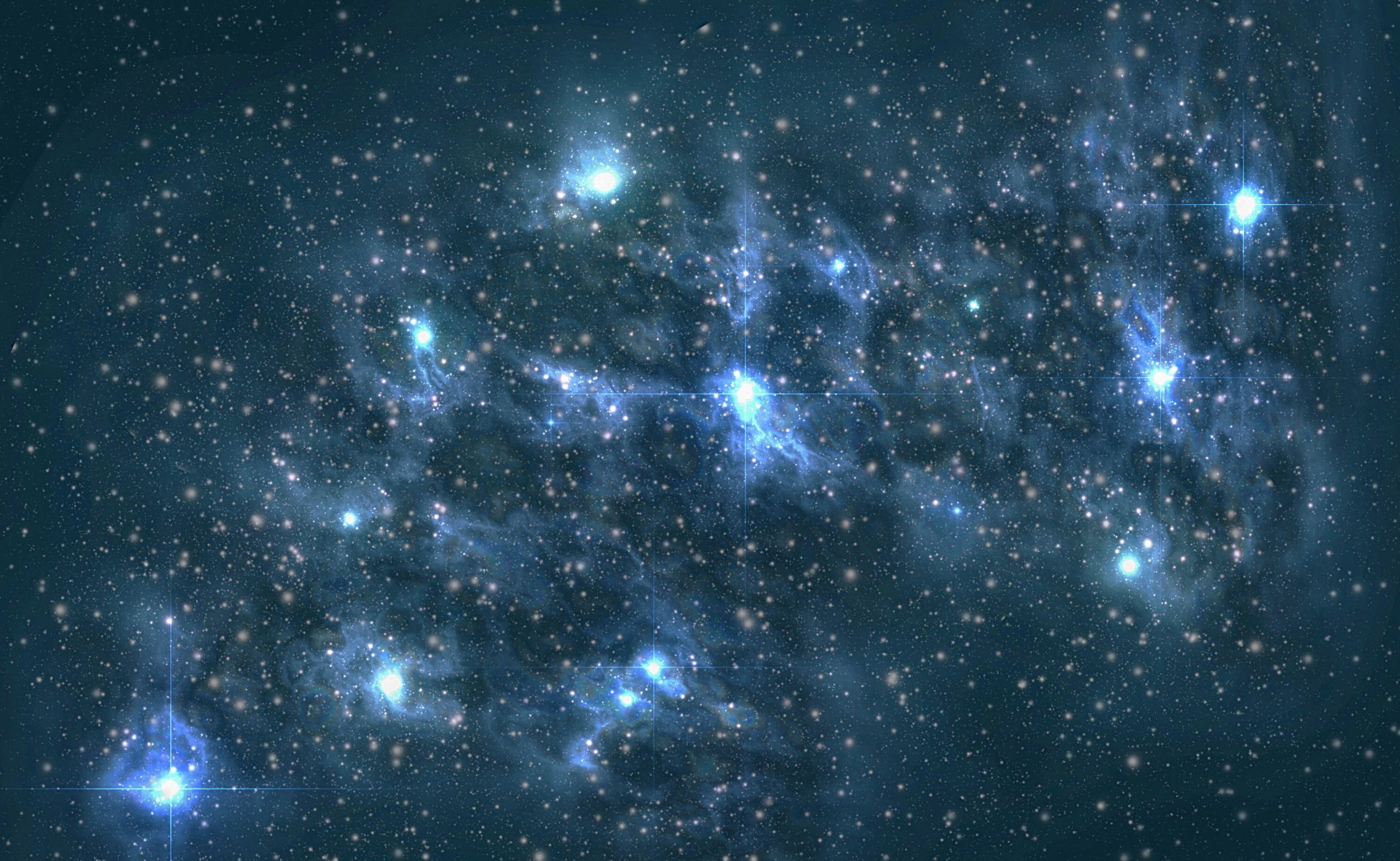 Rappresentazione grafica dello spazio con pianeti, stelle, nebulose, veicoli spaziali e satelliti