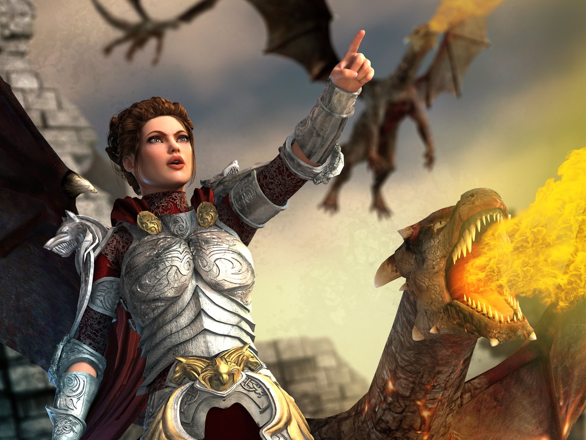 La ragazza cavaliere precaricata combatte il drago