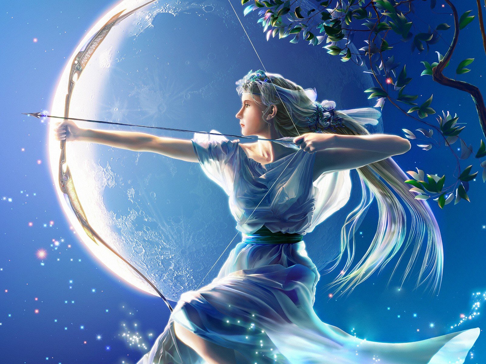 Disegno della ragazza con l'arco e la luna