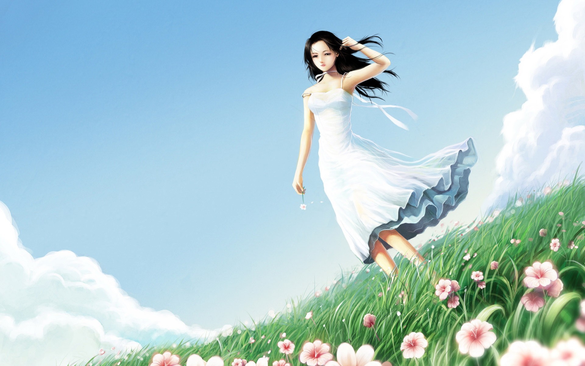 Disegno di una ragazza in un campo con fiori