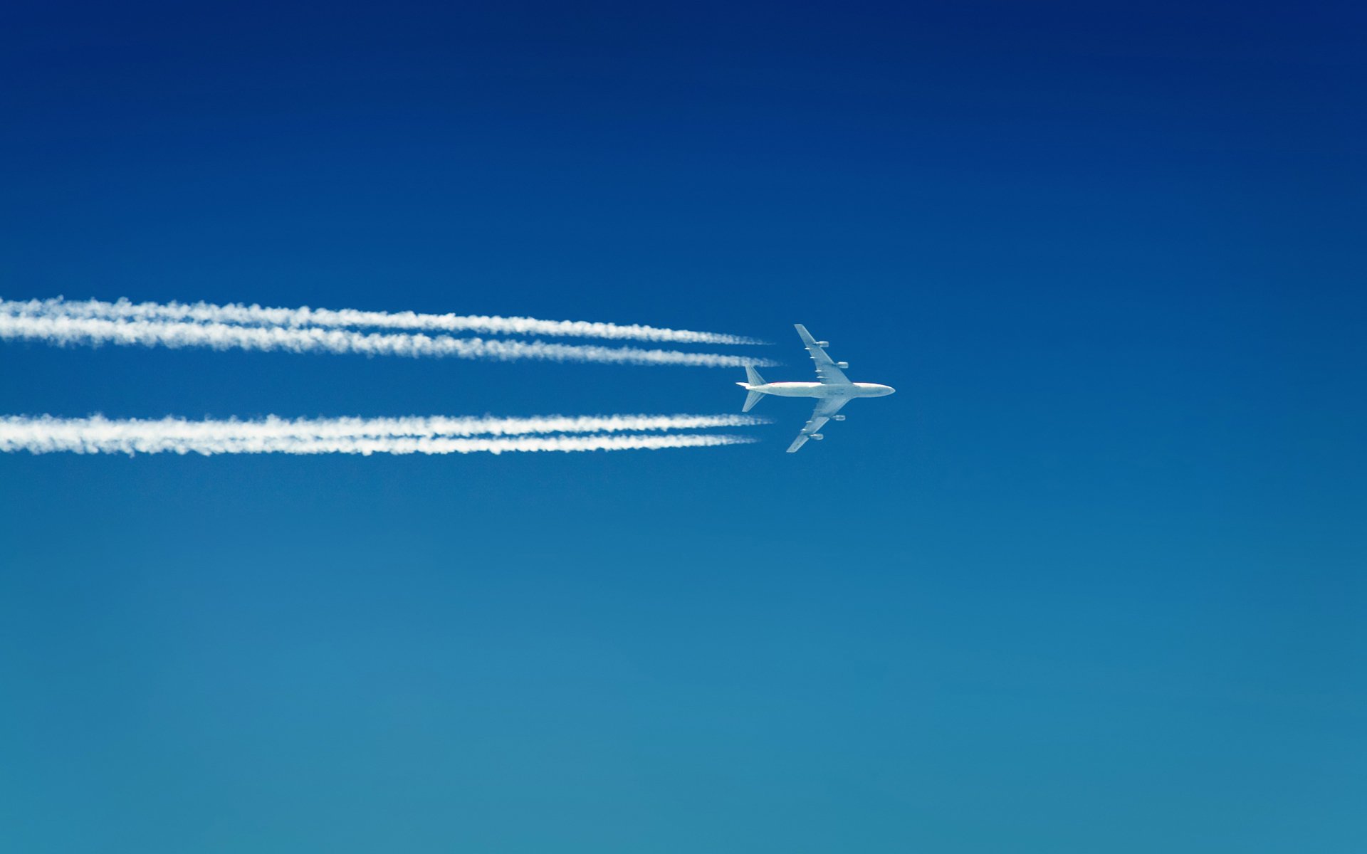 Un aereo che lascia dietro di sé uno schlef bianco come la neve nei cieli