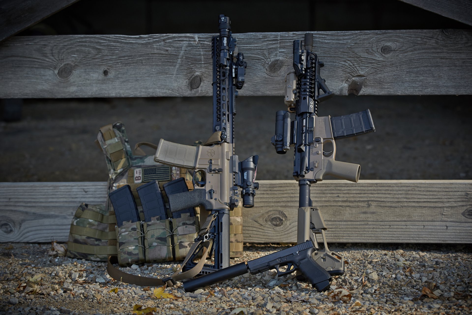 Due fucili e una pistola con silenziatore