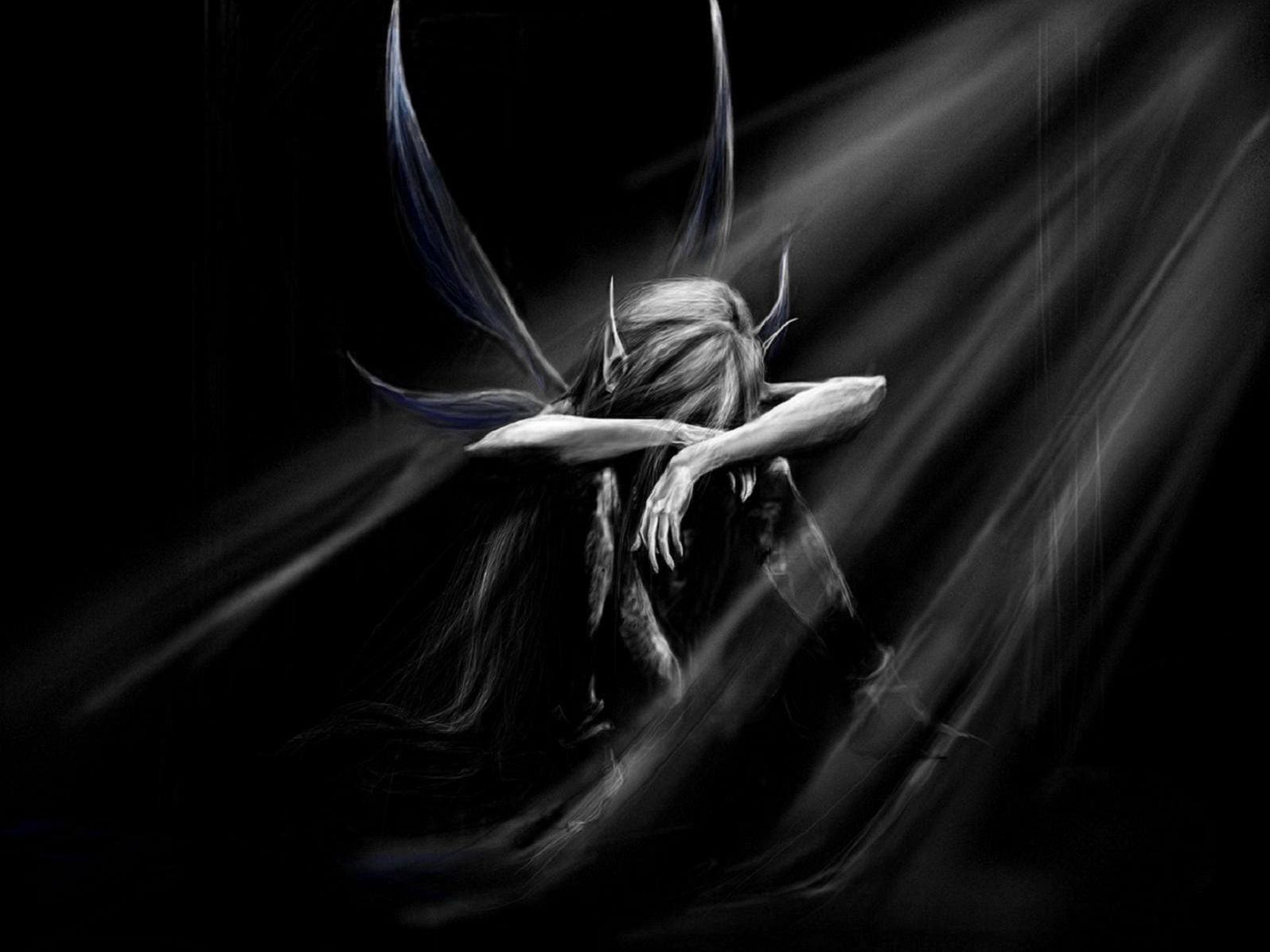 Elfo alato seduto al buio