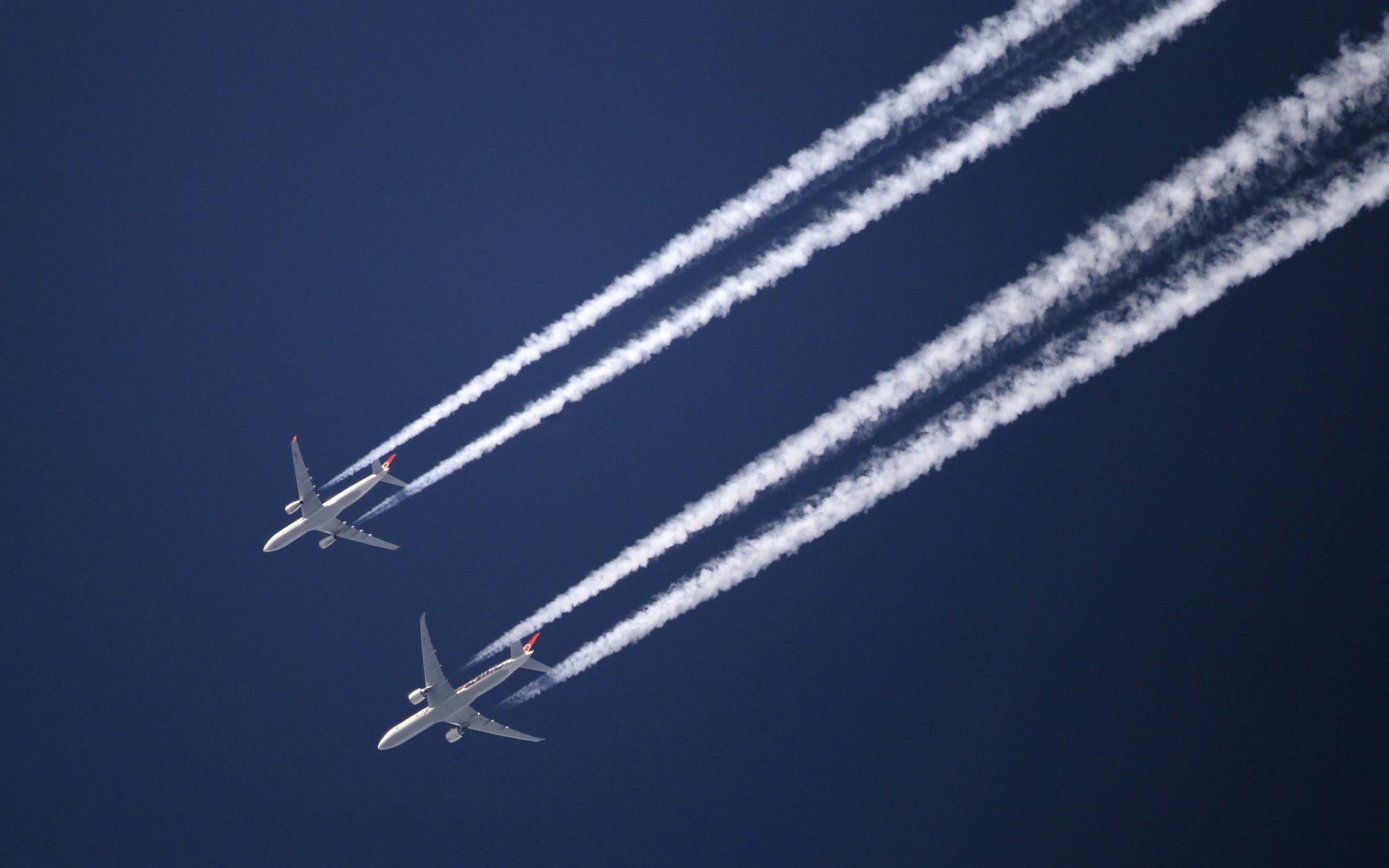 Nel cielo volare due aerei e lasciare una traccia