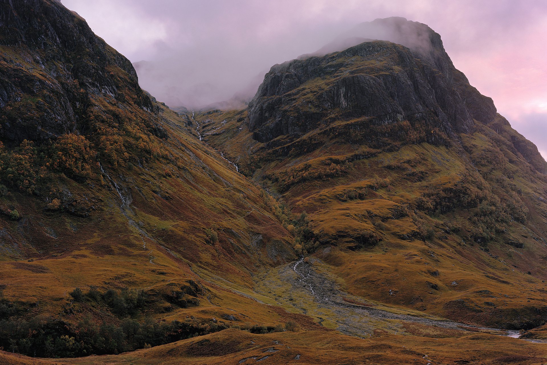 Radura in una foresta verde situata sullo sfondo di alte montagne
