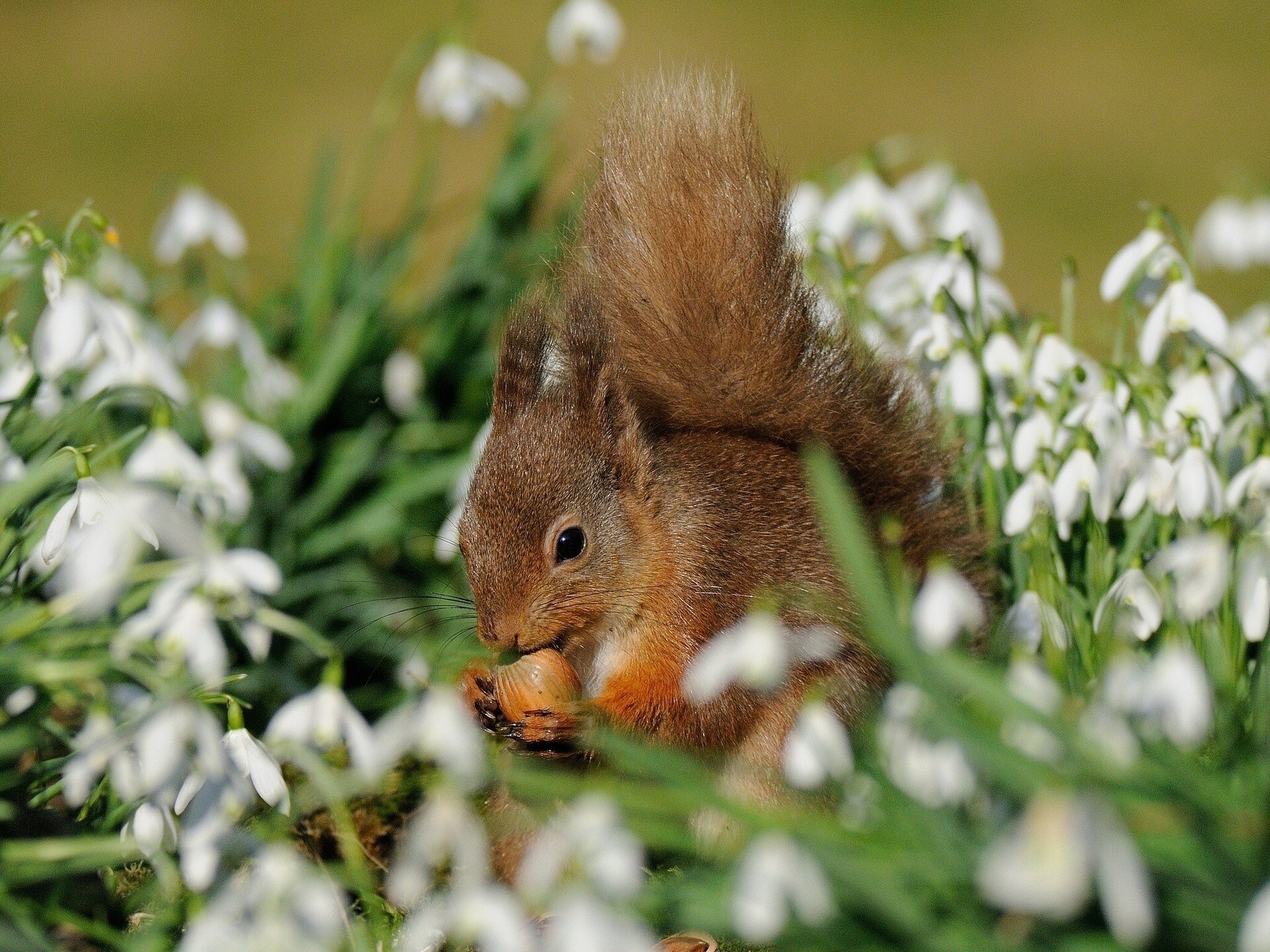 Silhouette di uno scoiattolo su uno sfondo scuro nei raggi di luce