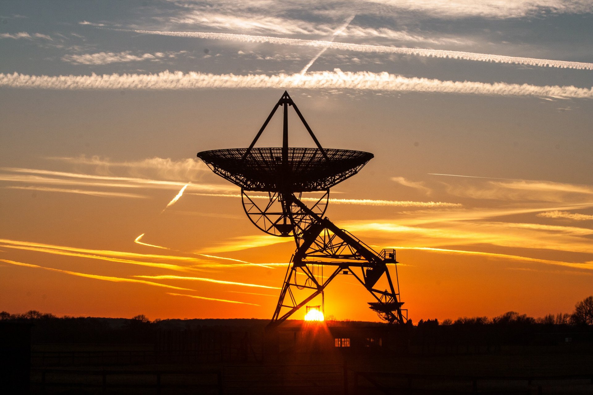 Stazione in montagna esplorare il mondo con l'aiuto di un'antenna