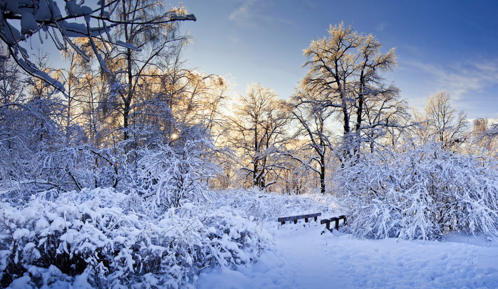 Alberi con foglie gialle in una giornata di sole nel parco autunnale della Scozia