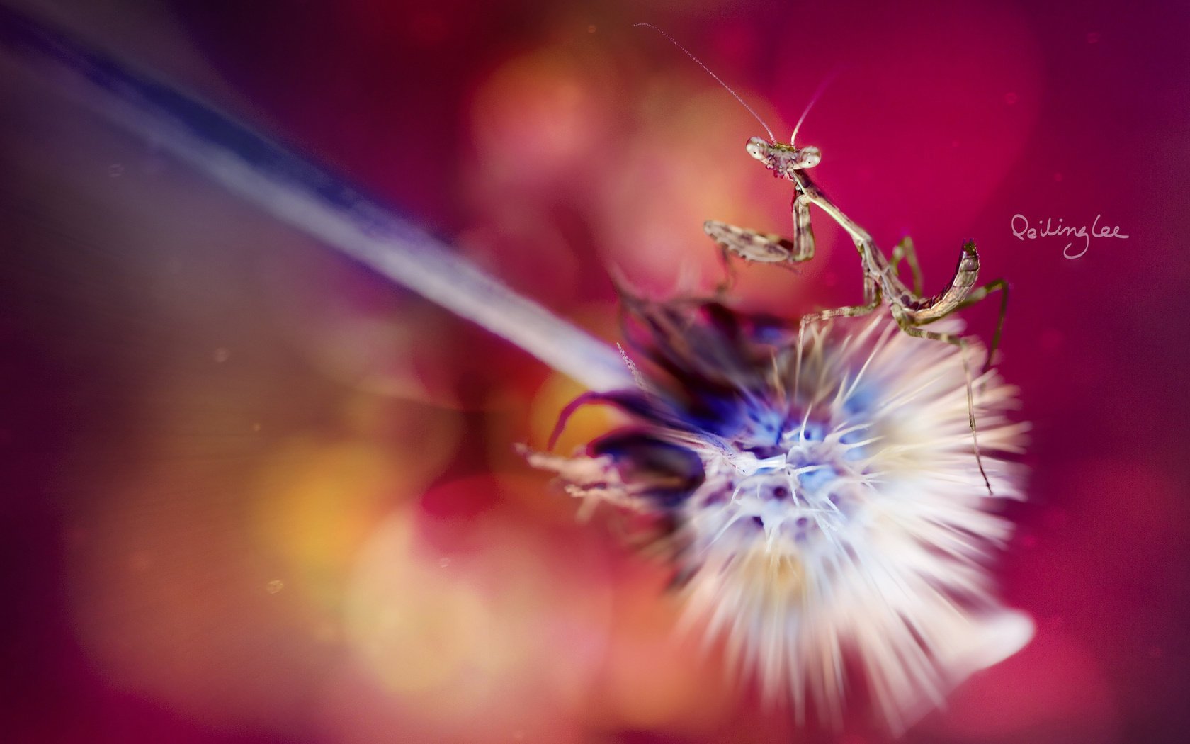 Mantide danza su un fiore soffice