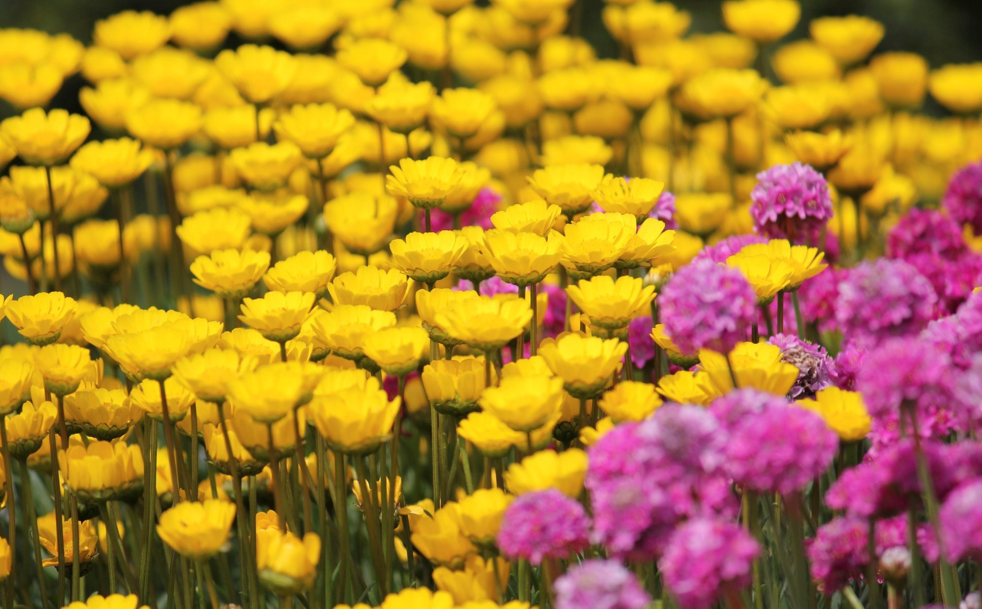 Bouquet variegato di tulipani non fioriti con farfalle colorate su sfondo verde