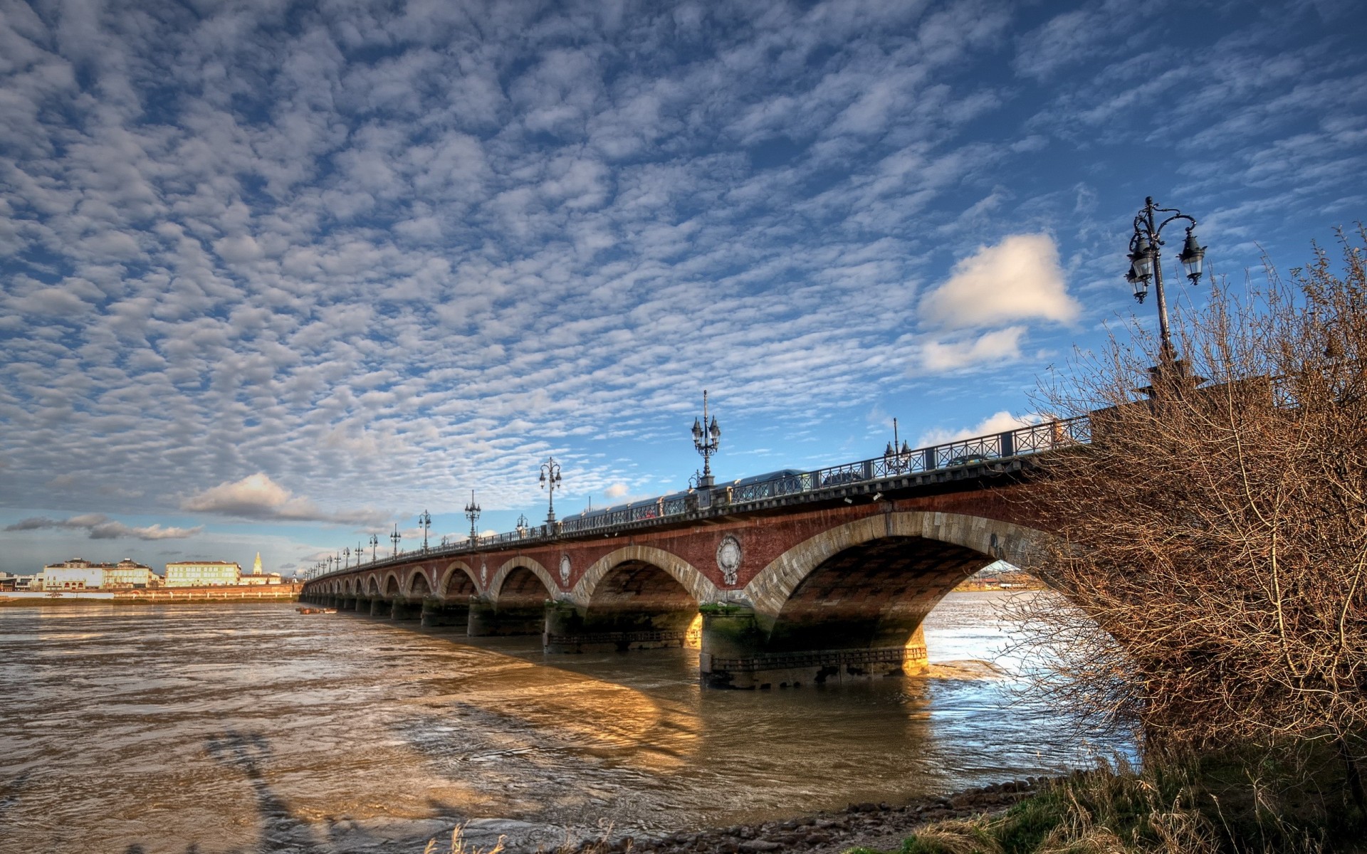 Ponte notturno di Francia lungo il fiume di lanterne riflettenti