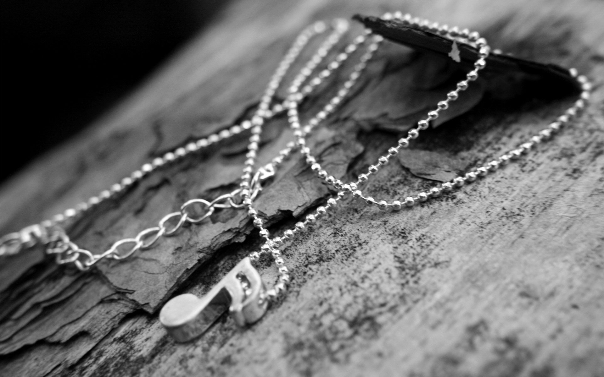 Ciondolo a catena con ciondolo a forma di nota sulla corteccia