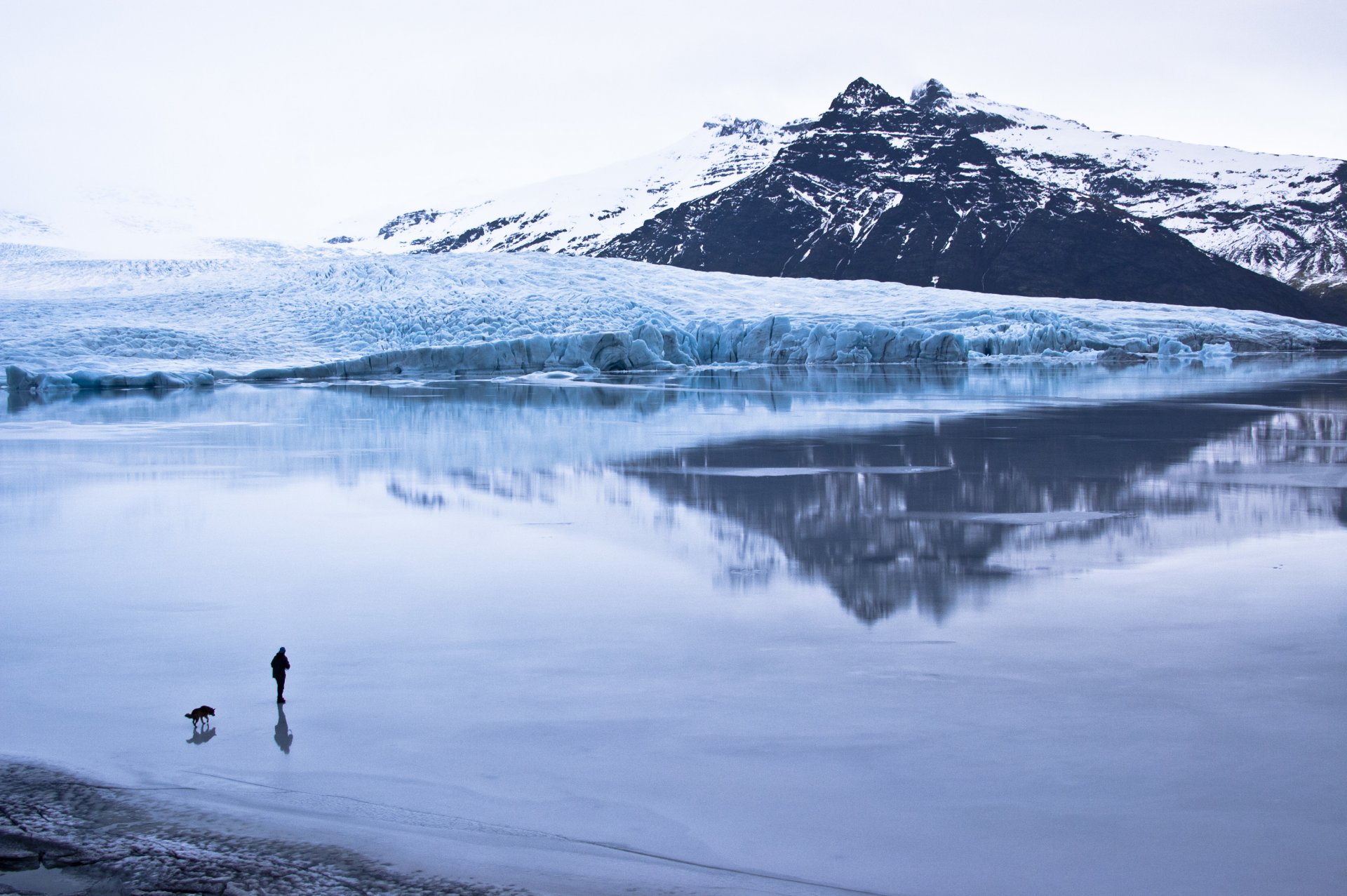 Foto dell'uomo sulla montagna ghiacciata Zera