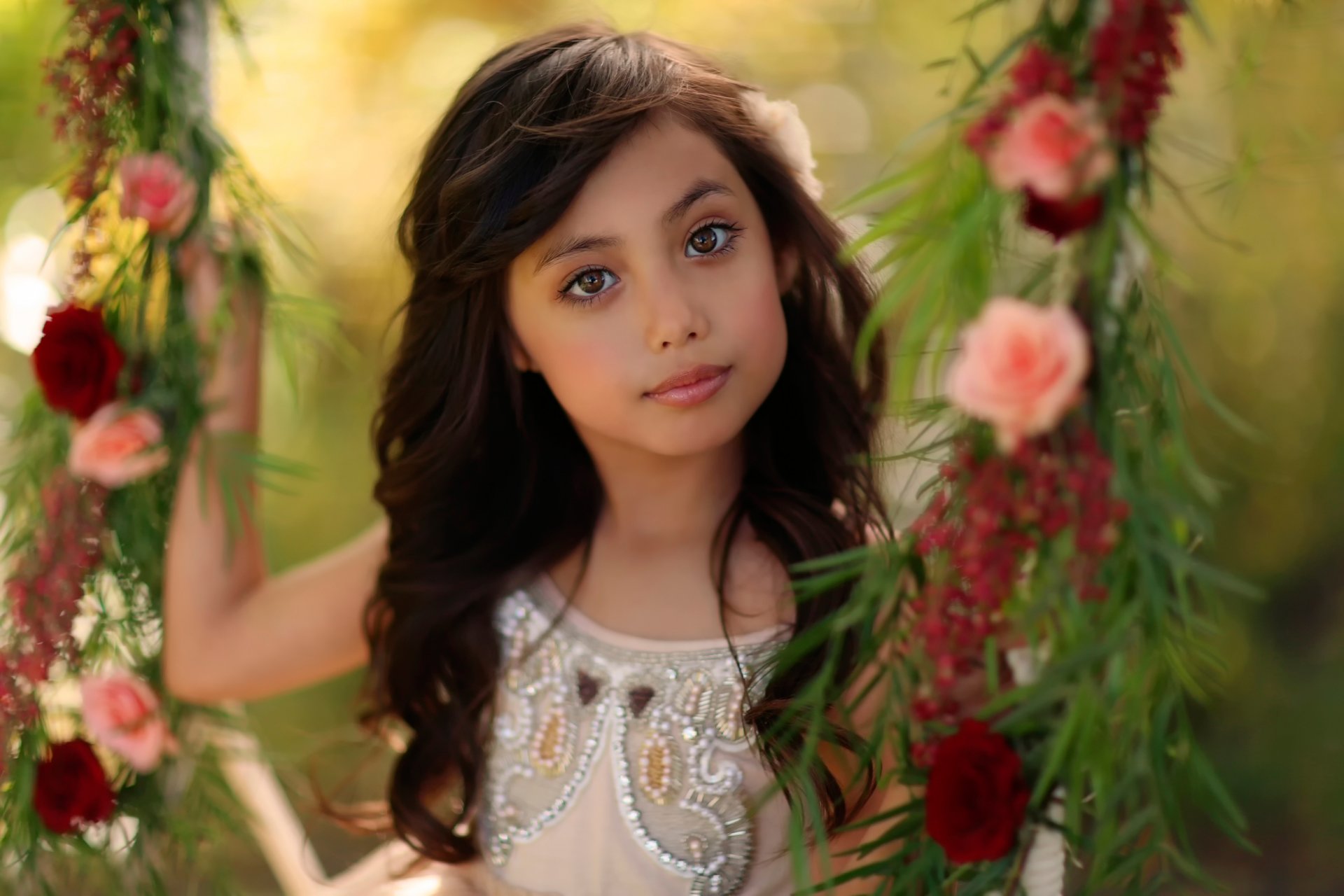 Disegno di una ragazza su un'altalena vicino alle gabbie per uccelli