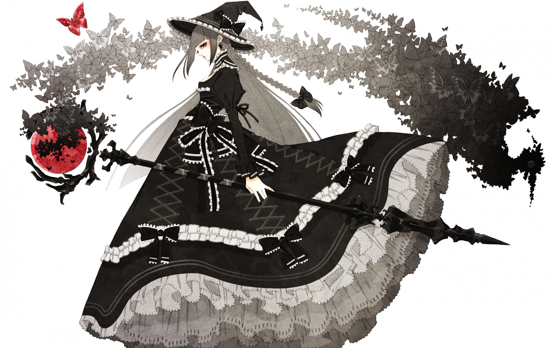 Giovane strega con un bastone in volo