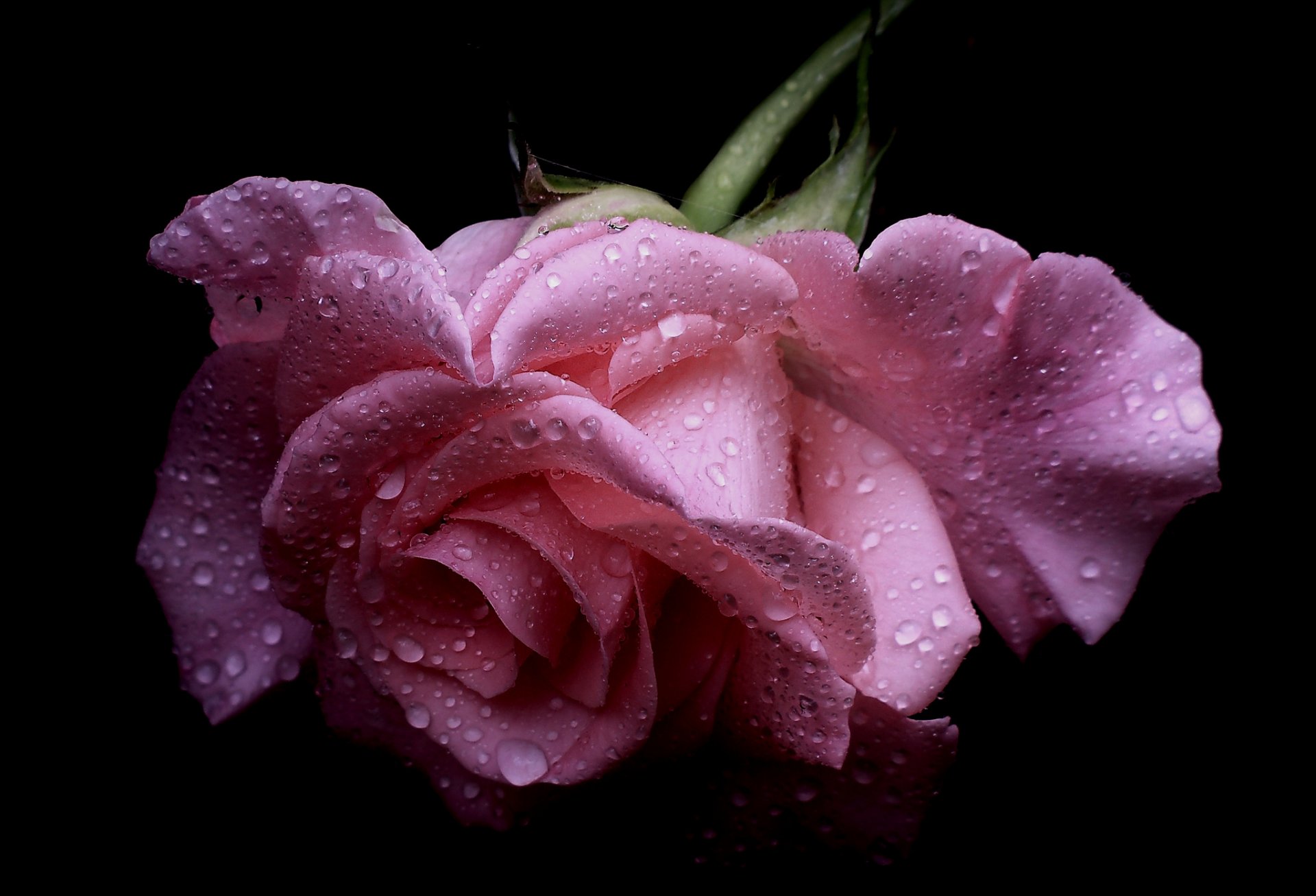 Bocciolo di rosa in piccole gocce di rugiada