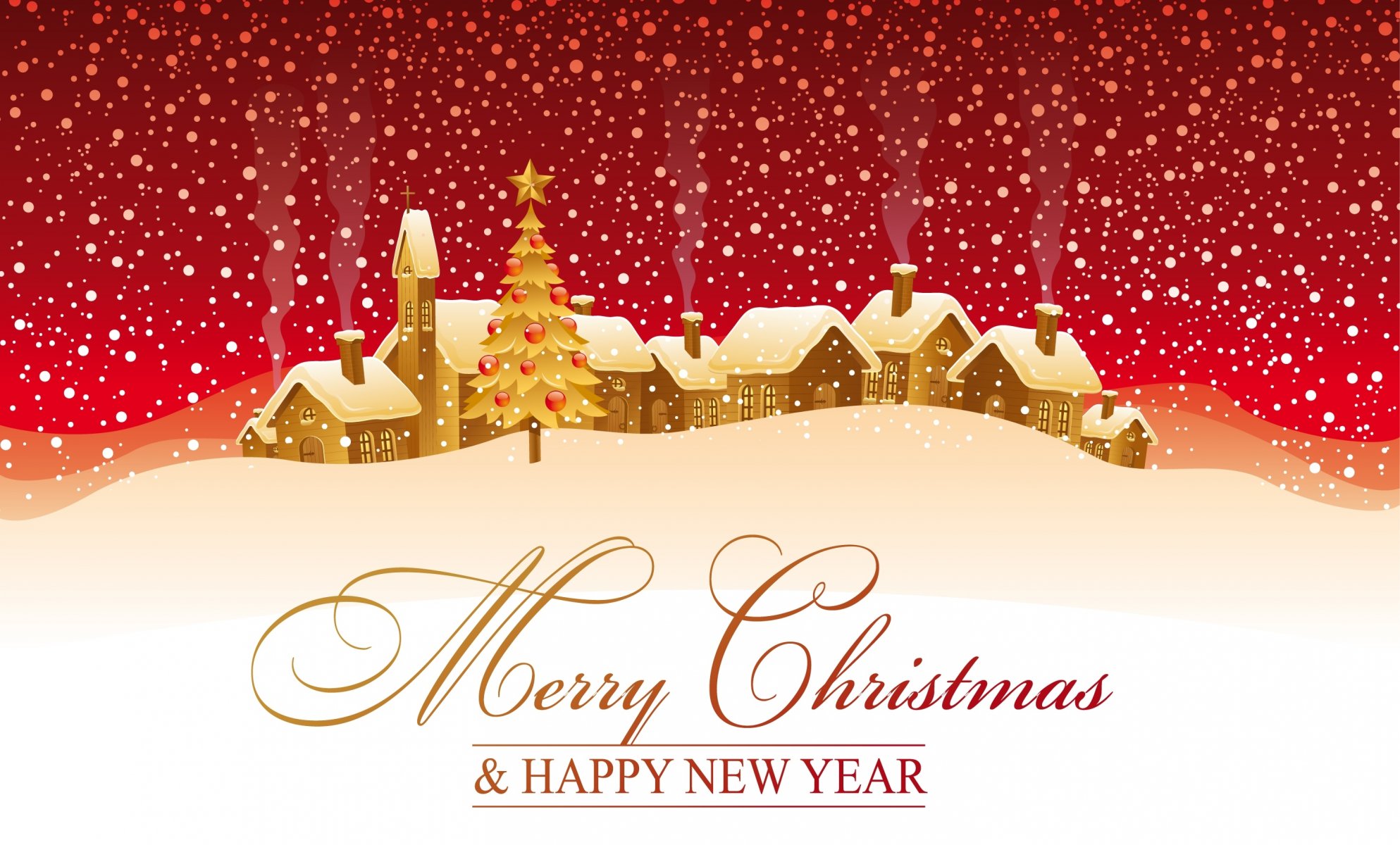Disegno di inverno con case con la scritta Felice Anno Nuovo