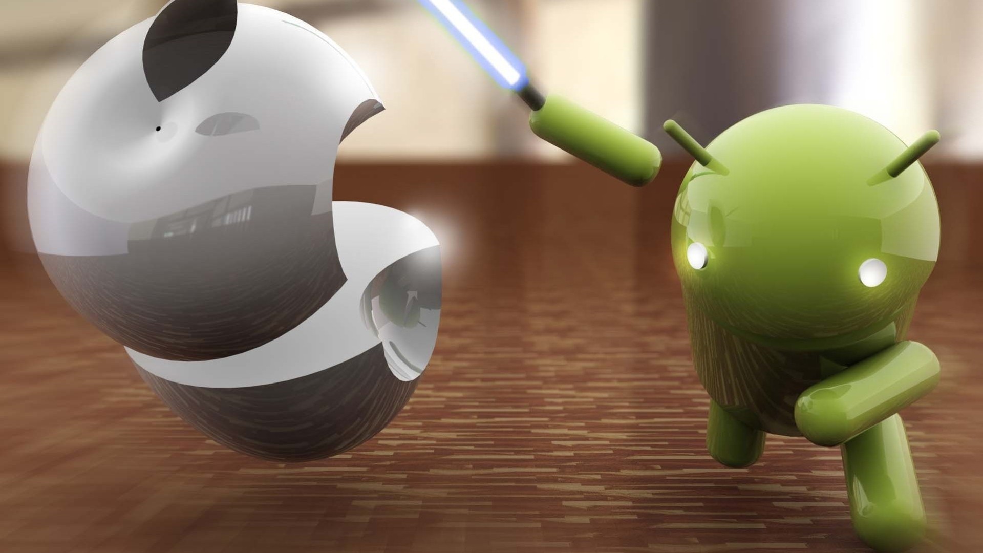 Tablet Apple nelle mani di un uomo su sfondo rosso e bianco