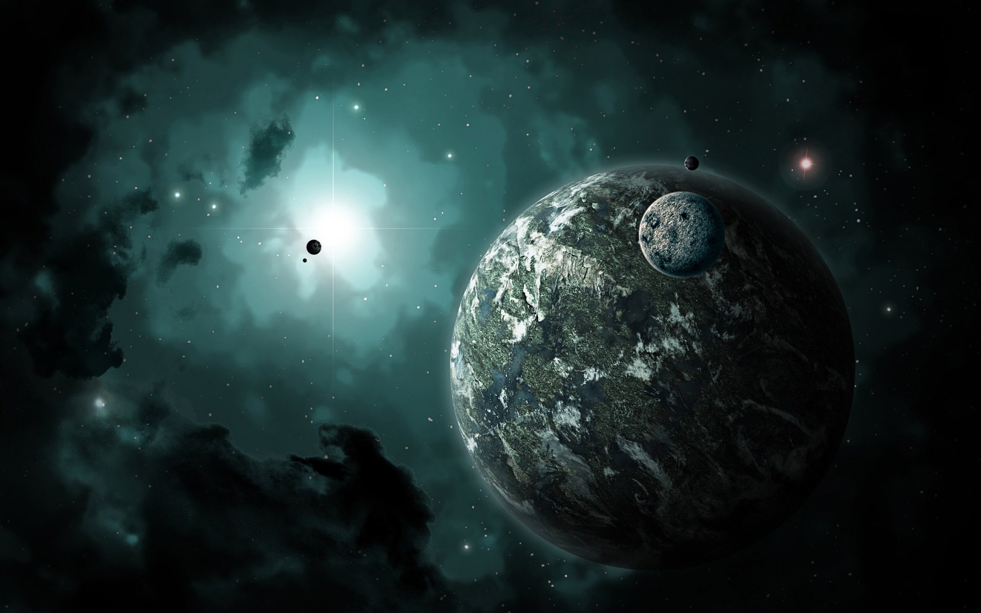 Il pianeta e la sua luna sullo sfondo dello spazio esterno e delle stelle